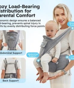 El portabebés Bear con asiento para cadera ha sido diseñado pensando en la comodidad y la seguridad tanto del bebé como de los padres. Con 6 opciones de transporte y una capacidad de carga de hasta 44 lbs, este portabebés es versátil y se adapta al crecimiento y las necesidades de su hijo. El asiento para cadera ergonómico asegura que las piernas del bebé estén correctamente posicionadas para prevenir lesiones y promover un desarrollo saludable. La distribución razonable de la carga en áreas clave como el abdomen, la cintura y los hombros brinda un soporte adecuado para el usuario, evitando lesiones en la columna. La tela certificada internacionalmente es suave, transpirable y duradera, ideal para su uso en todas las estaciones. Además, el portabebés ofrece detalles adicionales como cierres de seguridad, capucha a prueba de viento y ventana de ventilación para garantizar la comodidad y seguridad de su bebé. Con bolsillos laterales para almacenamiento y fácil limpieza gracias al forro interno lavable a máquina, el portabebés Bear garantiza una experiencia cómoda y tranquila para los padres en movimiento.