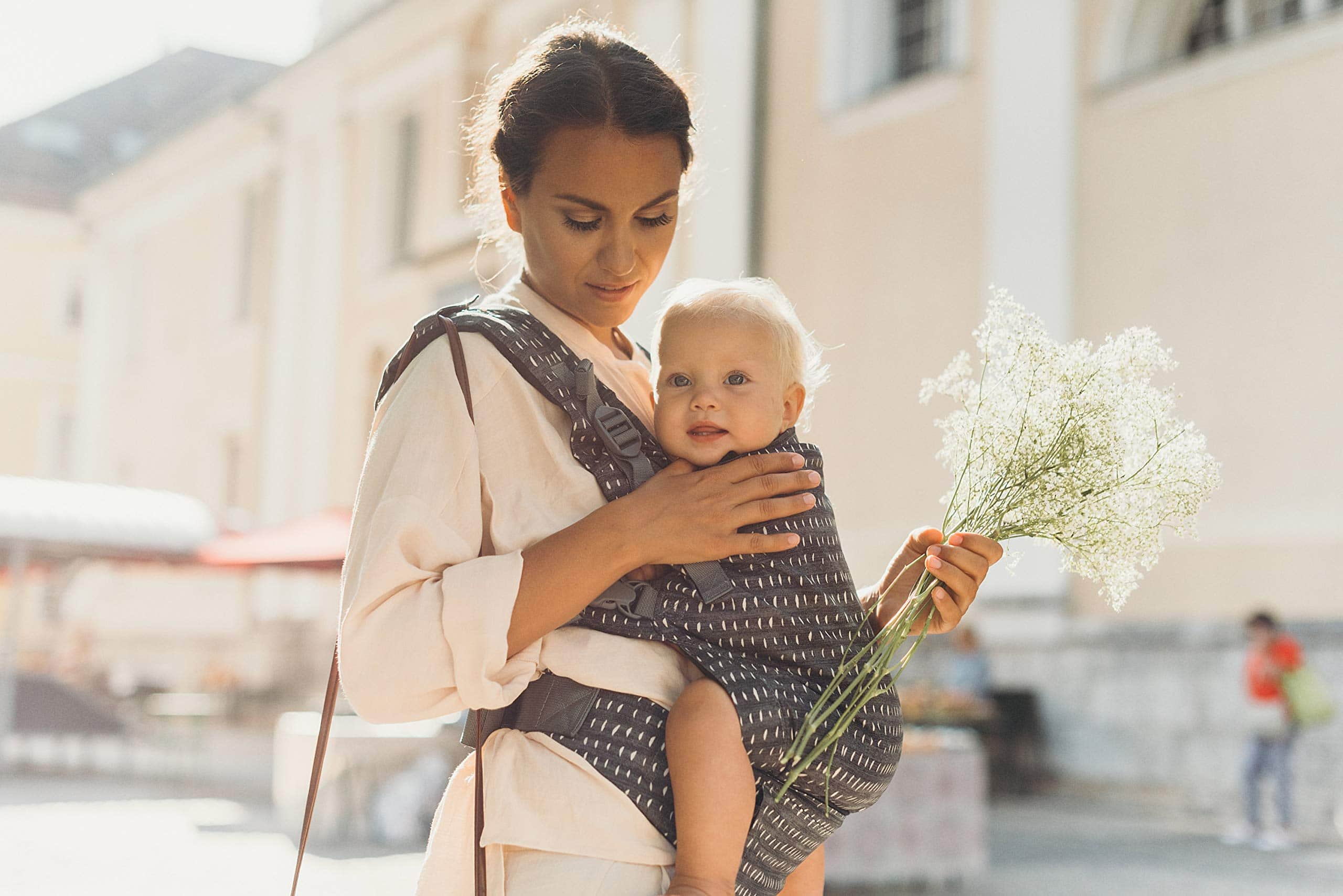 3. Proporciona la cobertura total de un fular o bandolera pero con la facilidad de un portabebés de hebilla. ¡También es suave y lavable a máquina!