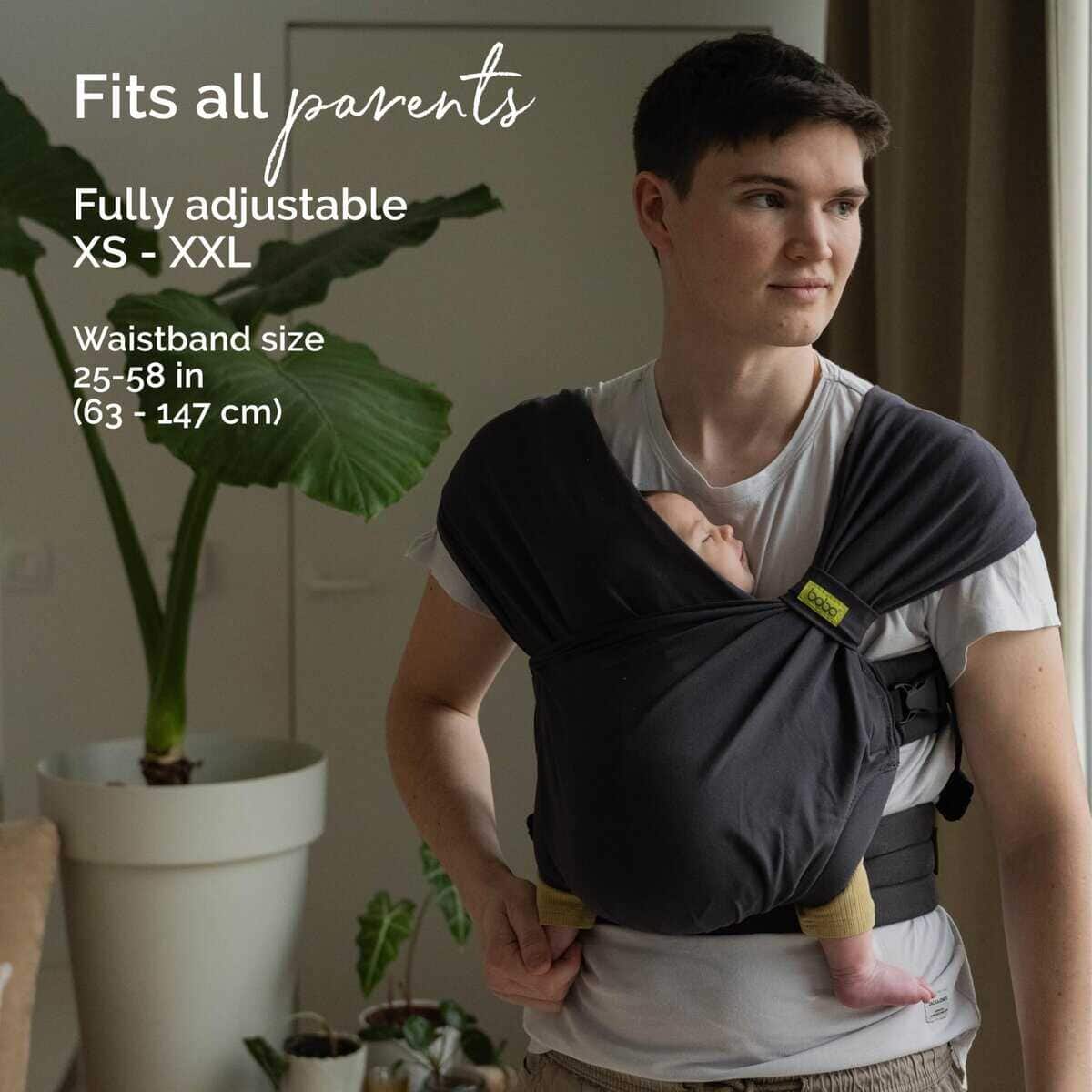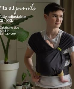 5. Talla única: Diseñado para contornear perfectamente a la forma de cada padre y bebé, nuestro portabebés de tamaño pequeño a grande ofrece un ajuste personalizado como ningún otro. La envoltura portabebés cuenta con tirantes cruzados que son fáciles de ajustar tanto en longitud como en ancho.