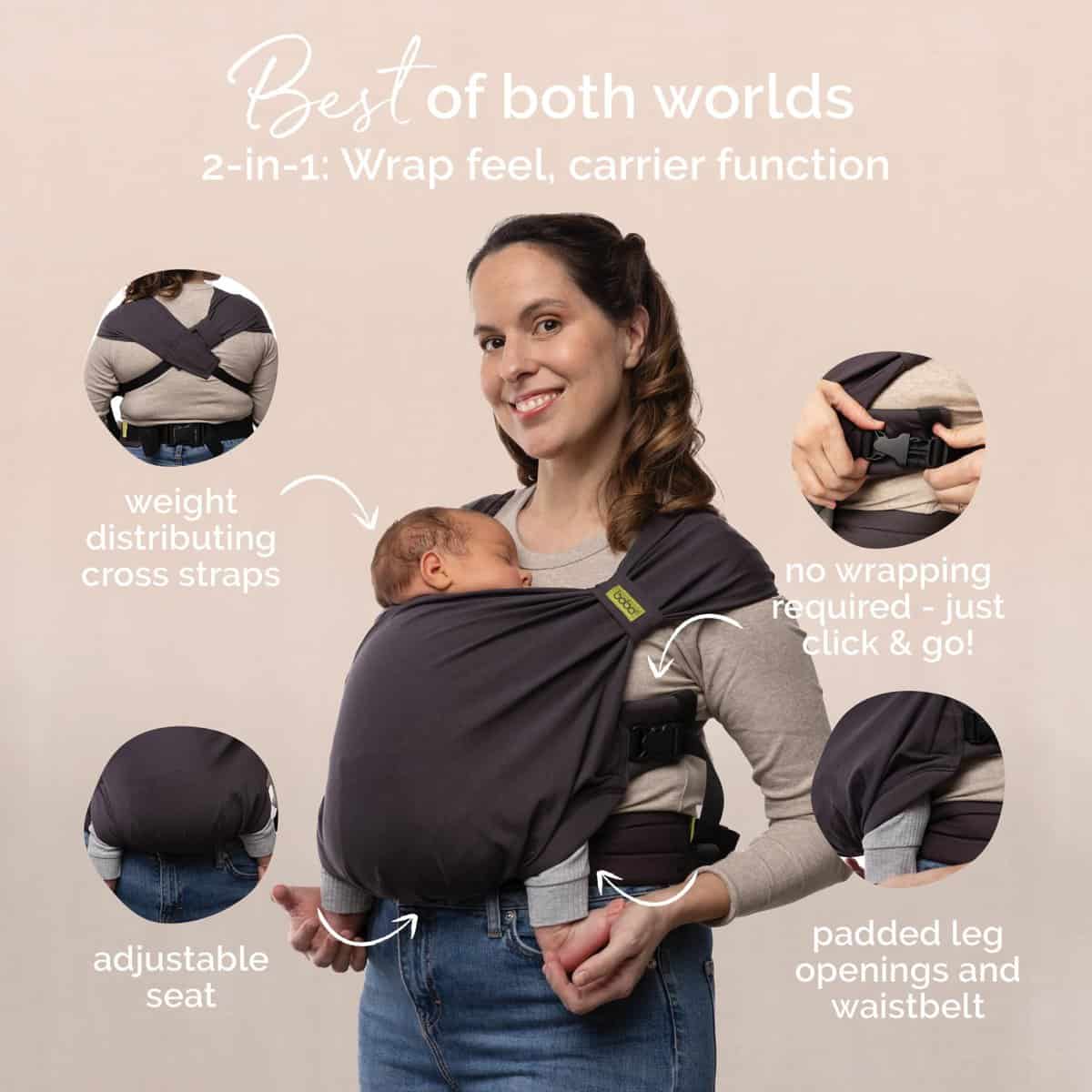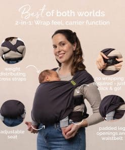 Portabebés híbrido Boba Bliss recién nacido a -Carbón