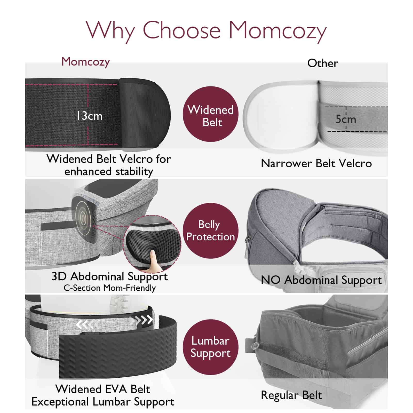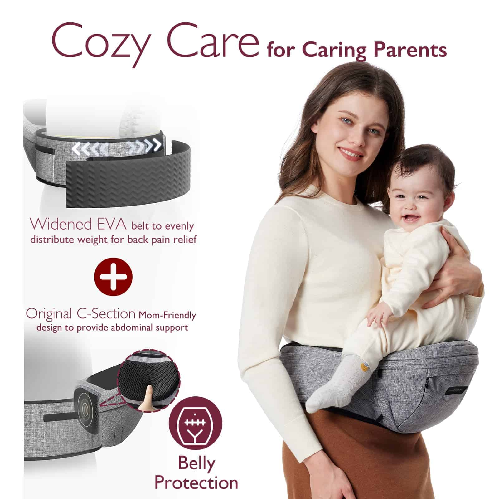 Con múltiples posiciones de transporte, incluidas mirando hacia adentro, mirando hacia afuera, llevándolo de lado y la posición de alimentación, el Portabebés con Asiento para Cadera de Momocozy ofrecerá a su bebé una experiencia cómoda y versátil. Los numerosos bolsillos de almacenamiento permiten llevar todos los elementos esenciales del bebé, desde pañales y toallitas hasta biberones y llaves, en un solo lugar conveniente.