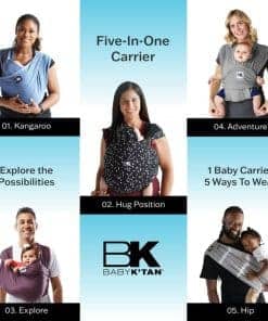 Portabebés original Baby K’tan – Disfruta de llevar a tu bebé sin frustraciones, sin manos y mantén a tu bebé cerca con el premiado Portabebés Baby K’tan Original. Fácil y rápido de colocar, este portador infantil es un fular listo para usar sin necesidad de envolturas! ¡El fular para bebé solo se desliza como una camiseta sin anillos, hebillas, cinturones o enganches molestos, y sin confusas telas extras! Favorito de la familia – El portabebés Baby K’tan Original tiene un diseño patentado de doble bucle y un estiramiento unidireccional único, haciendo que sea un versátil y seguro portador envolvente para llevar bebés desde el nacimiento hasta niños de hasta 35 libras. (Menores de 8 libras, consultar a un profesional de la salud) Nuestro fular crea la mejor posición similar al útero ideal para recién nacidos y prematuros, mientras que las mamás encuentran la lactancia materna fácil y discreta, y pueden vincularse con su bebé a través del cuidado piel con piel de manera modesta. Además, el diseño sencillo hace que sea fácil estar en movimiento en segundos. El estilo sin complicaciones de camiseta hace que el Portabebés Baby K’tan sea un favorito entre los papás también! 100% Comodidad – Hecho de algodón suave y transpirable, las múltiples posiciones de uso del fular aseguran que tu bebé o niño siempre esté cómodo, y el fular para bebé está Aprobado como Saludable para la Cadera por el Instituto Internacional de Displasia de Cadera. El diseño de fular de doble hombro distribuye uniformemente el peso a lo largo de la espalda y los hombros del portador, lo que lo hace cómodo para llevar incluso a bebés más grandes durante largos períodos. Diseño de fácil cuidado – Todos los Portabebés Baby K’tan vienen en una bolsa de transporte a juego que se convierte en una banda de apoyo, ¡así que asegúrate de no tirarla! El portabebés compacto se dobla fácilmente para caber en una bolsa de pañales para que nunca te quedes sin él, y el fular de algodón es conveniente para lavar y secar en máquina. Los portabebés son de tamaño individual XXS, XS, S, M, L o XL para el portador del bebé. Utiliza la tabla de tallas para encontrar tu talla correcta. Del Fabricante El Portabebés Baby K’tan es un innovador portabebés 100% natural de algodón suave que es una combinación ideal de fular, envoltura y portabebés, proporcionando las posiciones y beneficios de los tres. No hay otro portabebés disponible como este (¡un fular listo para usar!) que permita a los padres y cuidadores llevar cómodamente a bebés y niños pequeños (desde el nacimiento hasta los 3 años) en múltiples posiciones. El portabebés K’tan es ideal para bebés prematuros y bebés con necesidades especiales. Es ligero y compacto como un fular, pero pasa por encima de ambos hombros para distribuir el peso del bebé de manera uniforme como un portabebés estructurado. La banda de soporte ajustable en la espalda ofrece al portador un soporte adicional en la espalda y facilita ajustar la distribución del peso del bebé o niño pequeño en ambos hombros. El diseño exclusivo ofrece al portador un portabebés de algodón 100% natural listo para usar, ¡sin hebillas, broches, anillos o hardware! Extremadamente fácil de usar, el secreto detrás de este portabebés listo para usar inventado por padres es su diseño único de doble bucle, que brinda mayor seguridad para llevar al bebé y privacidad para la mamá mientras amamanta! ¡Es fácil de poner y quitar, y viene en una bolsa de transporte gratuita! Baby K’tan, LLC utiliza algodón 100% natural libre de productos químicos dañinos, formaldehídos y colorantes azo.