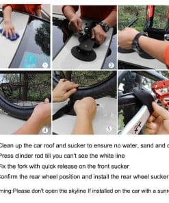 Atención antes de usarlo: 1. Recomendamos una velocidad inferior a 120 km/h 2. Por favor, verifica la línea blanca en el cilindro antes de usarlo 3. Si lo instalas en un auto con sunroof, por favor no abras el techo corredizo 4. Ten en cuenta que el portabicicletas del techo delantero debe instalarse en un lugar plano (como el techo del auto). Si se instala en el parabrisas delantero que tenga una curvatura demasiado grande, la ventosa fuerte podría romper el vidrio. 5. La lubricación de mantenimiento no está incluida en el paquete, debido a que es un producto con embargo en envíos internacionales. Pero puedes encontrar un aceite de silicona normal en tu tienda local para reemplazar la lubricación de mantenimiento, por favor siéntete libre de contactarnos con cualquier problema. Detalles del producto: Marca: RockBros Material: Aleación de aluminio Peso: Aproximadamente 2 KG (4.4 lb) Tamaño: 47 x 13 cm (18.5 x 5.12 pulgadas) Color: Negro / Rojo Instalaciones: Paso 1: Limpia el techo del auto y la ventosa para asegurarte de que no haya agua, arena y polvo Paso 2: Instala la ventosa en el techo del auto Paso 3: Presiona el cilindro hasta que no puedas ver la línea blanca (generalmente de 30 a 45 segundos) Paso 4: Fija la horquilla con liberación rápida en la ventosa delantera Paso 5: Confirma la posición de la rueda trasera Paso 6: Fija la rueda trasera y el pedal Características: Multiaplicaciones: puede ser utilizado para la mayoría de los autos en el mercado, como sedanes, coupés, hatchbacks, SUVs, vans y más Para bicicletas de ruta, bicicletas de montaña o cualquier bicicleta con rueda delantera de liberación rápida Instalación fácil: Liberación rápida para la instalación de la horquilla delantera y velcro para la rueda trasera Abrazadera de horquilla resistente para sostener tu bicicleta de forma segura por la horquilla delantera Las abrazaderas de montaje ajustables facilitan la instalación y el cambio entre varios vehículos compatibles.