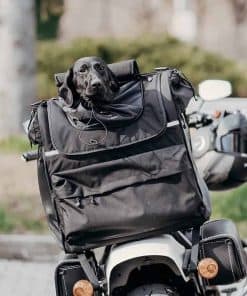 DEEMEED Motorcycle Dog Carrier es la solución ideal para llevar a tu perro grande de manera segura y cómoda en tus viajes en motocicleta. Confeccionado con tela de Cordura de alta calidad, esta bolsa para perros es resistente a la abrasión y repelente al agua, ofreciendo estilo y versatilidad. El sistema de ventilación triple garantiza que tu mascota esté siempre fresca y cómoda durante el viaje. La construcción resistente con paredes laterales rígidas y una placa de aluminio en la parte inferior proporciona estabilidad y seguridad. El sistema de montaje universal permite una instalación rápida y segura en varias motocicletas, incluidas aquellas con parrilla de equipaje y sissy bar. El forro interior de suelo sintético y gomoso añade confort adicional y facilita la limpieza. Ya sea que estés viajando en tu motocicleta con un sissy bar, parrilla de equipaje o simplemente en el asiento, la bolsa para perros DEEMEED es la elección perfecta para perros grandes de 25 a 44 libras.