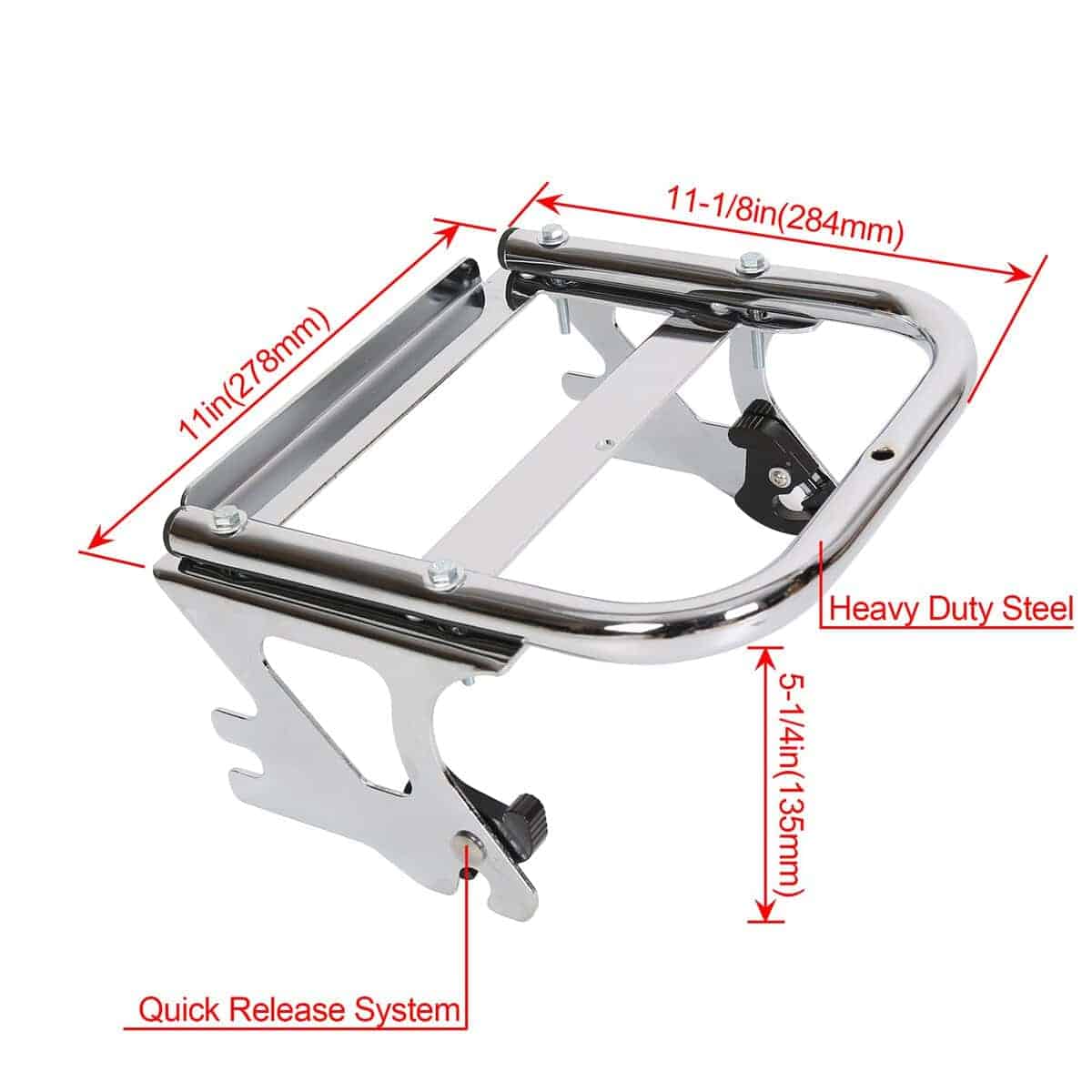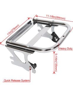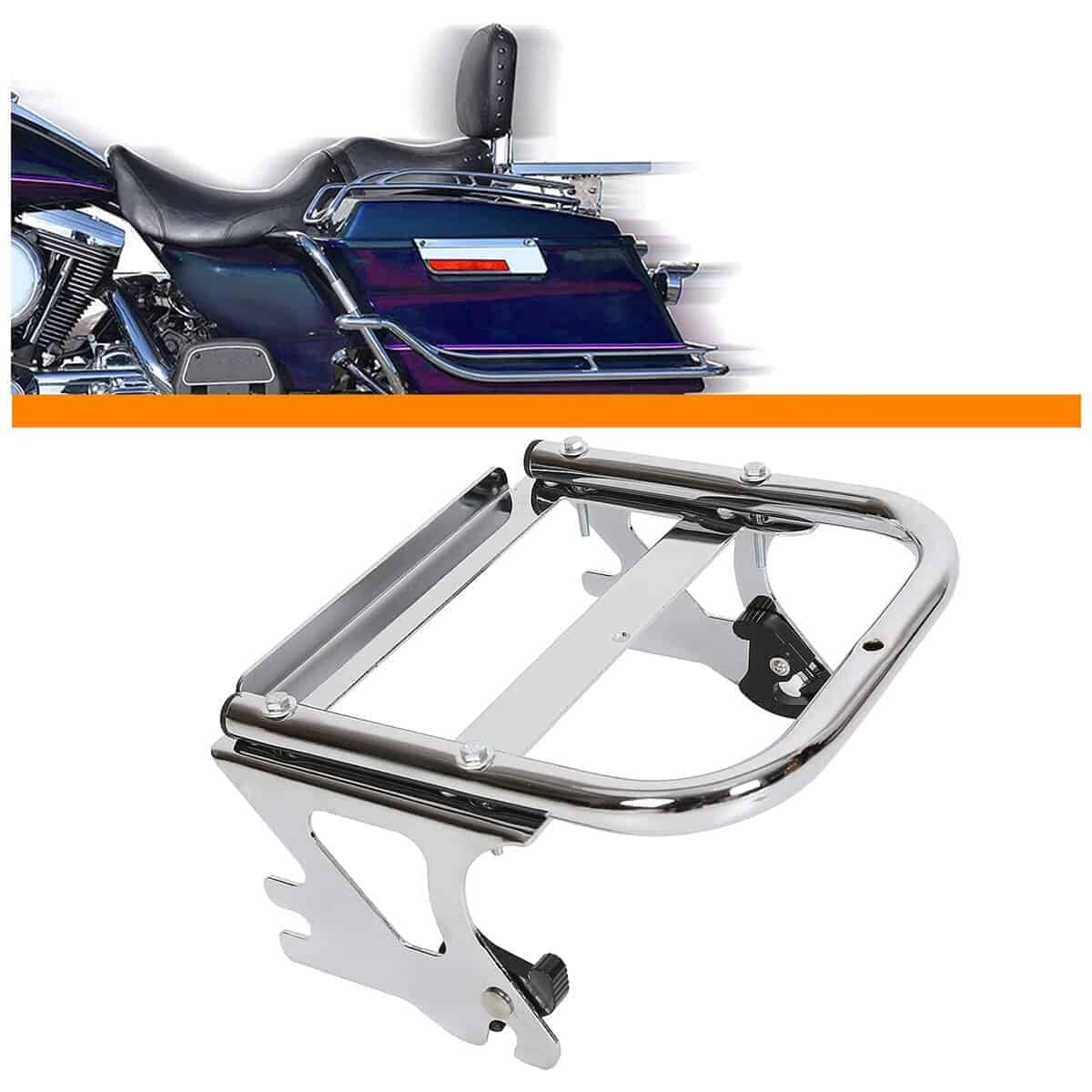 Portaequipajes desmontable de dos plazas para el Tour Pak Pack para Harley Touring 97-08. Por favor, asegúrate de que tu motocicleta sea compatible con nuestro producto. Características: Estado: mercado de accesorios 100% nuevo. En excelente estado y muy duradero. Tamaño: como muestra la imagen. Color: Cromo. Material: Metal. Medición: Detalle como se muestra en la imagen. Si necesitas el Kit de Hardware de Montaje del Portaequipajes para Harley Touring 1997-2008, busca el ASIN B07D13BQKR. Si necesitas un kit de Portaequipajes y hardware de montaje, consulta el ASIN B07GWPVTQP.
