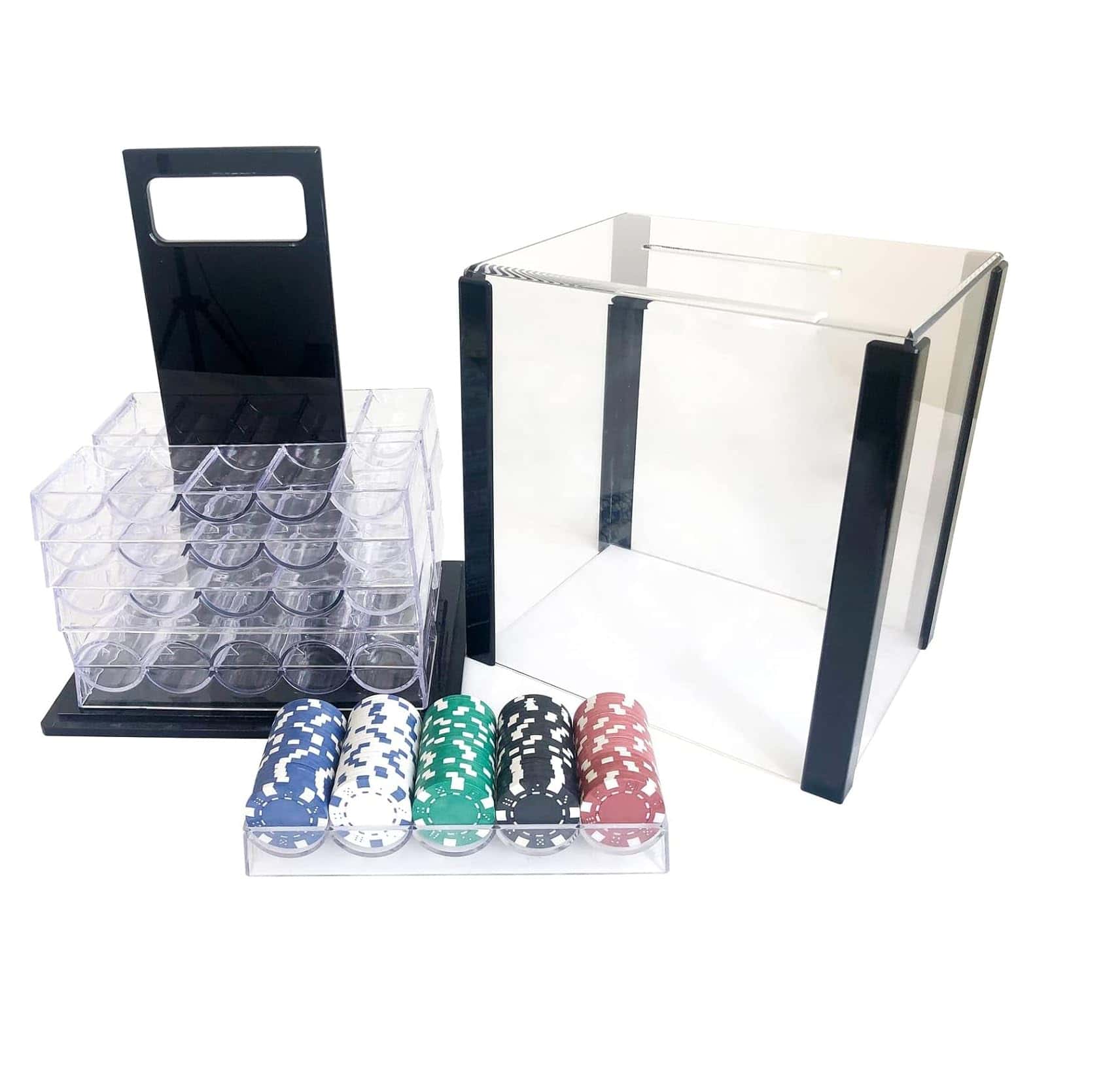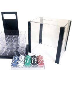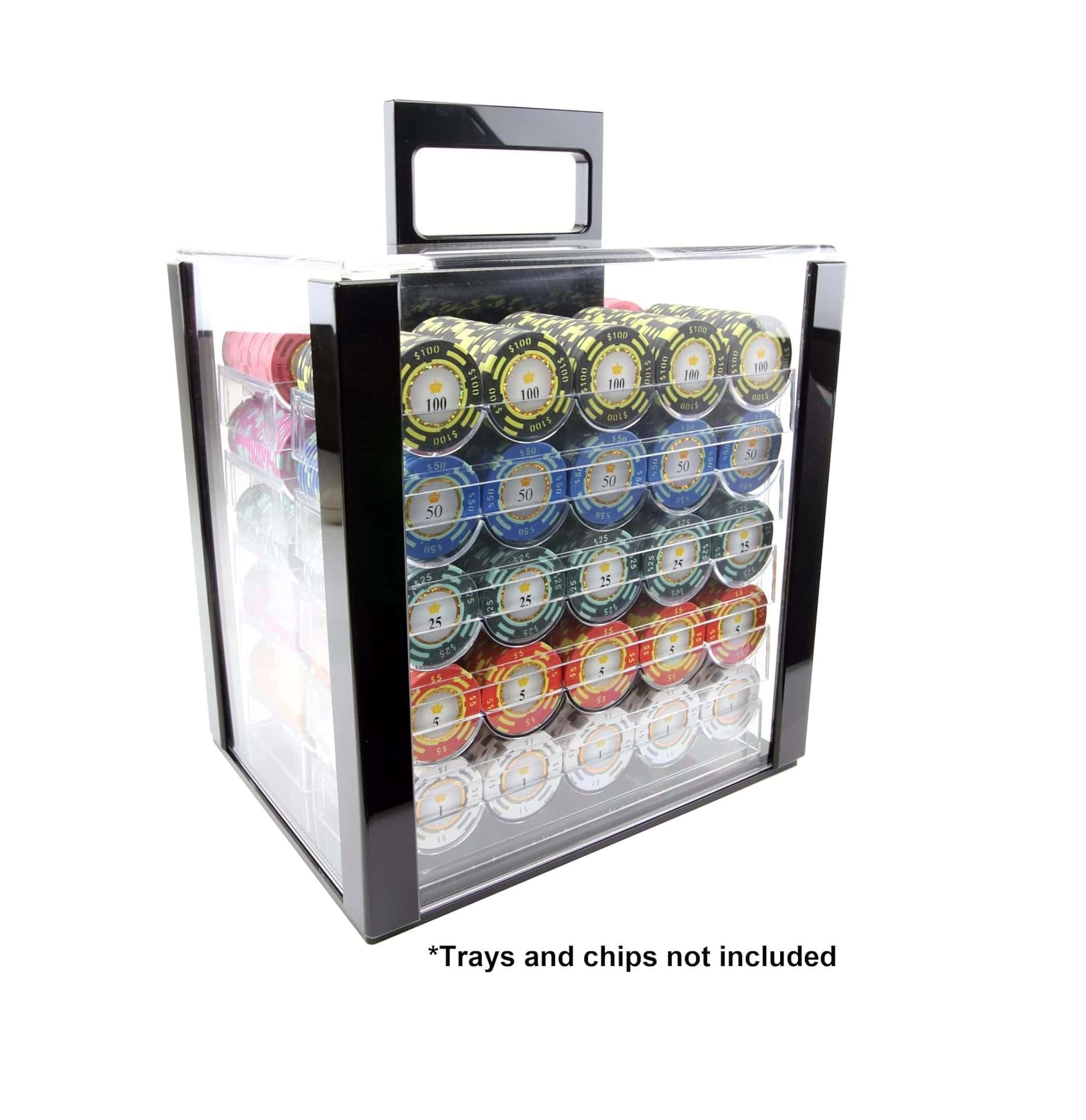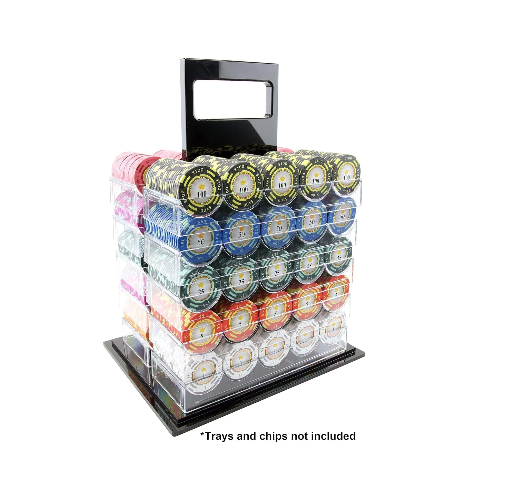 10 bandejas de fichas de póker de acrílico transparente. Cada bandeja sostiene 100 fichas. No se incluyen tapas de bandeja.