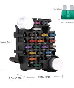 1. Caja de fusibles de 18 circuitos de conductividad óptima para fusibles ATC/ATO (tamaño mediano); Tiene un lado positivo y otro negativo, voltaje de funcionamiento máximo de 32V DC.