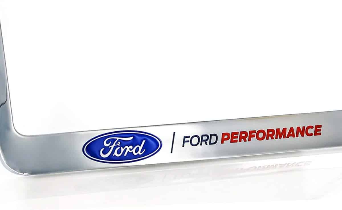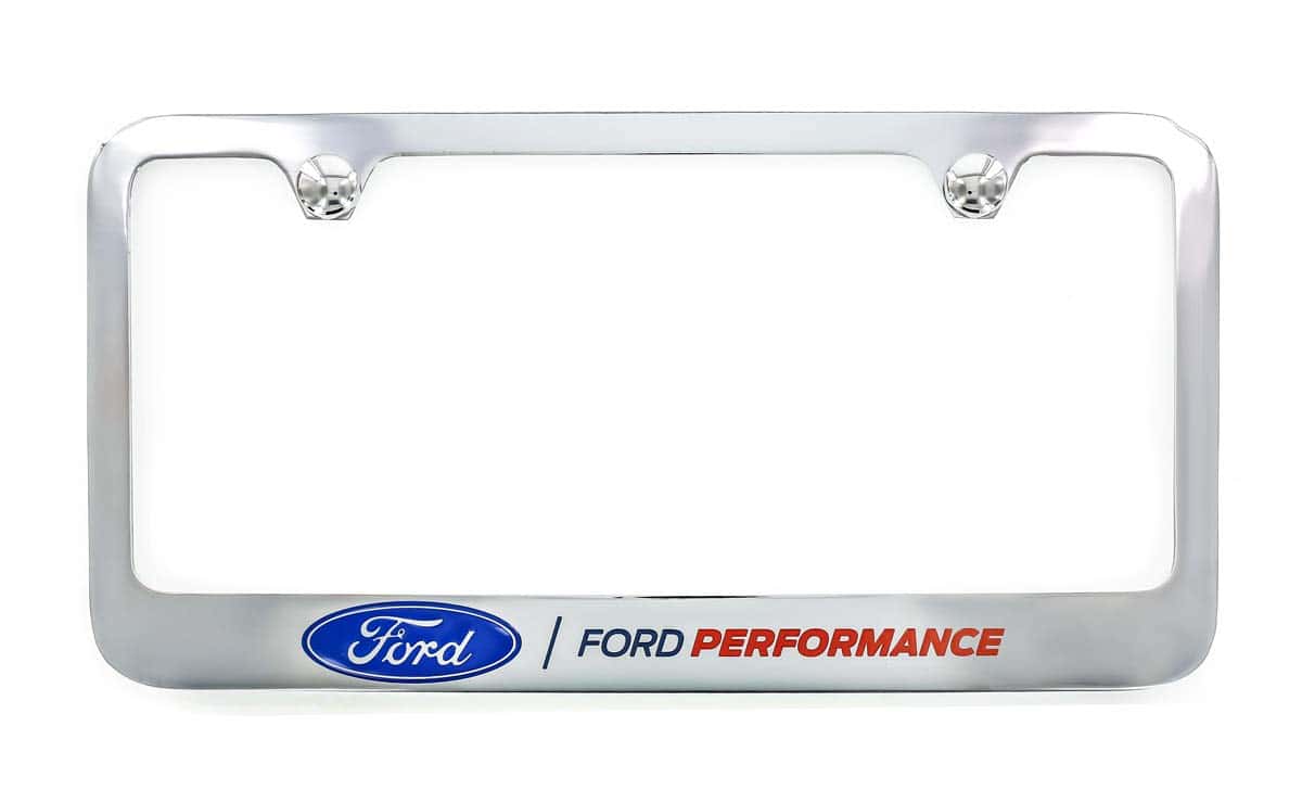 Muestra tu orgullo por Ford con este elegante portaplacas oficial de Ford de alta calidad con el logotipo de Ford Performance. Fabricado en metal de latón sólido. El mejor marco de calidad en el mercado. Supera todos los estándares OE. Recubrimiento de cromo grueso y transparente para protección. Estilo de 2 agujeros en la parte inferior ancha. Grabado de precisión y relleno de color epoxi a mano, además de pulido a mano. Viene con tapas de tornillo a juego y empaquetado para protección. Tamaño estándar de portaplacas en EE. UU. y Canadá. Ideal como regalo para un nuevo propietario de Ford. No compatible con placas de matrícula de DMV más bajas en las esquinas inferiores. Producto oficial con licencia de Ford.