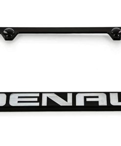 Este producto con licencia oficial de GMC está hecho de metal de zinc recubierto en negro. La calidad de este portaplacas supera todos los estándares de OE. No solo obtendrás un producto de calidad con licencia oficial, sino que también tendrás la tranquilidad de saber que recibirás un producto de marca oficial con licencia. El merchandising con licencia oficial es la única manera de personalizar tu coche como desees. El portaplacas se adapta a todas las placas estándar en EE. UU. y Canadá. Si vives fuera de EE. UU. y Canadá, mide tu placa para asegurarte de que este marco se adapte a tu placa. (Tamaño de placa estándar en EE. UU. y Canadá: 12″ x 6″)