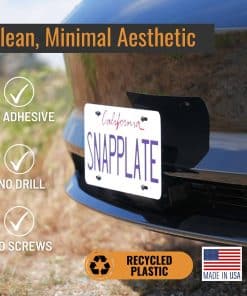 SnapPlate es perfecto para: Quitar tu placa para exposiciones de autos Instalarlo para evitar multas mientras estás estacionado en un parquímetro Quitarlo para limpiar tu auto en casa o en un lavado de autos Instalarlo en caminos y puentes con peajes controlados por placas Disuadir el robo con tornillos de seguridad de tipo torx en la placa y el soporte Instalar una placa temporal para apoyar a tu equipo favorito en el día del juego