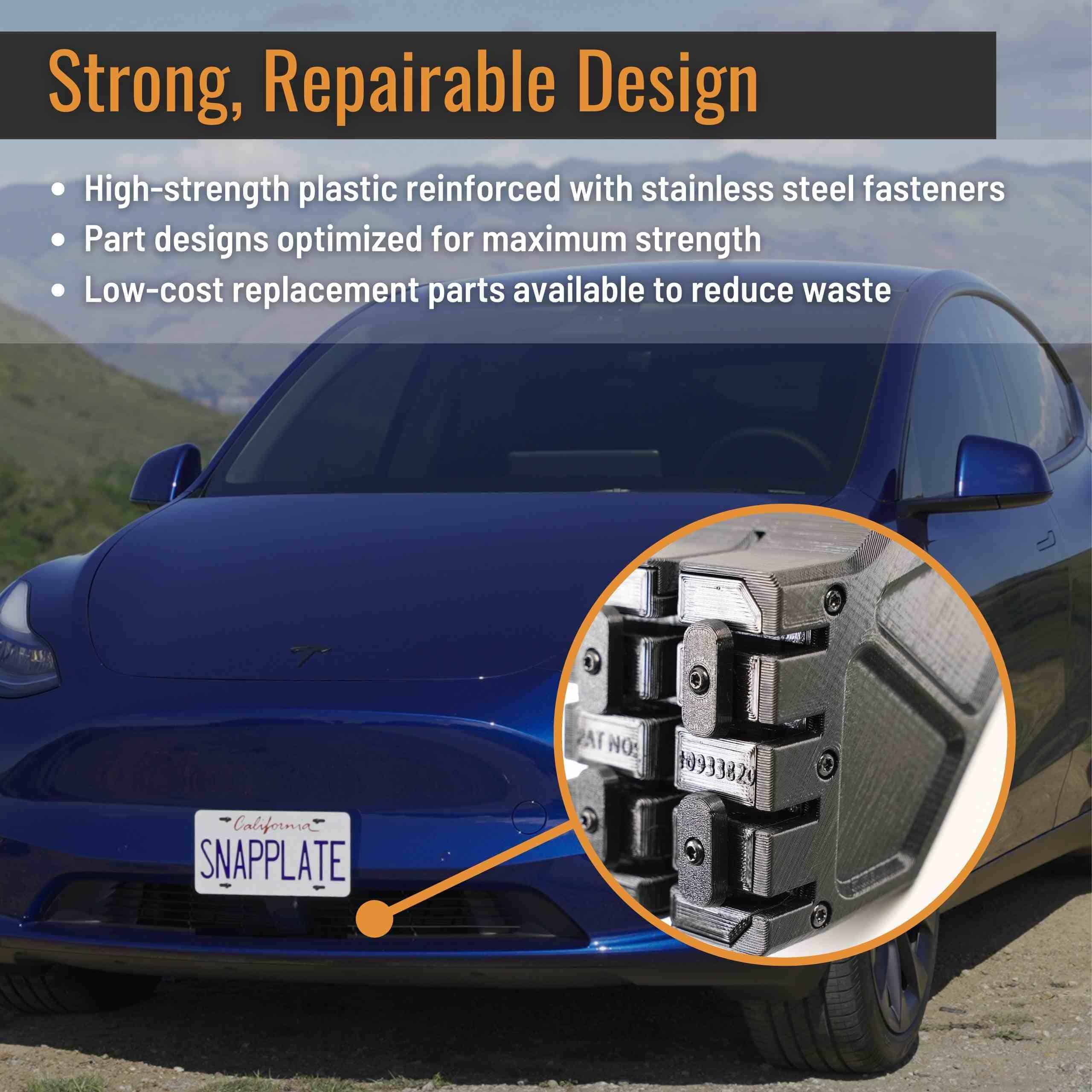 1. DISEÑO RESISTENTE Y BLOQUEABLE – SnapPlate+ está hecho de plástico de alta resistencia reforzado con sujetadores de acero inoxidable e incluye un tornillo de seguridad y un destornillador para evitar la extracción y disuadir el robo. ¡RETÍRELO PARA LAVADOS DE COCHE CON CONTACTO!.
