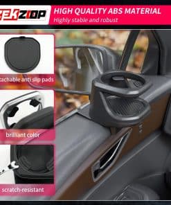 2. Material: El portavasos para la puerta lateral está hecho de material ABS de alta calidad y más grueso para un uso a largo plazo y resistencia a las grietas. El portavasos podría asegurar estabilidad y seguridad incluso en terrenos accidentados, evitando movimientos o aflojamientos.
