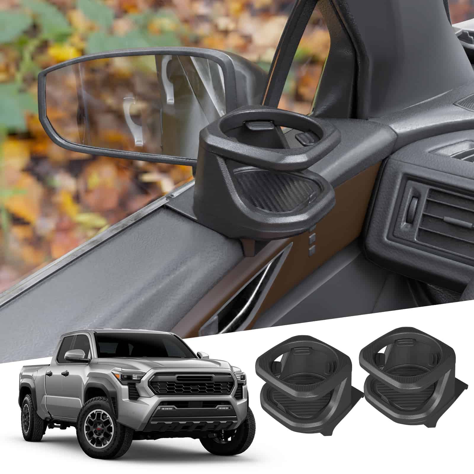 1. Compatibilidad: El portavasos para ventanas de coche es compatible con Toyota Tacoma 2024 2025, encajando perfectamente con el diseño original de Tacoma. Por favor, verifica detenidamente el modelo del vehículo antes de realizar el pedido. Nota: Este set incluye 2 piezas de portavasos para la puerta frontal. Para proporcionar una mejor visión de conducción, podrías mover el portavasos del lado del conductor hacia adelante y el del lado del pasajero hacia atrás.