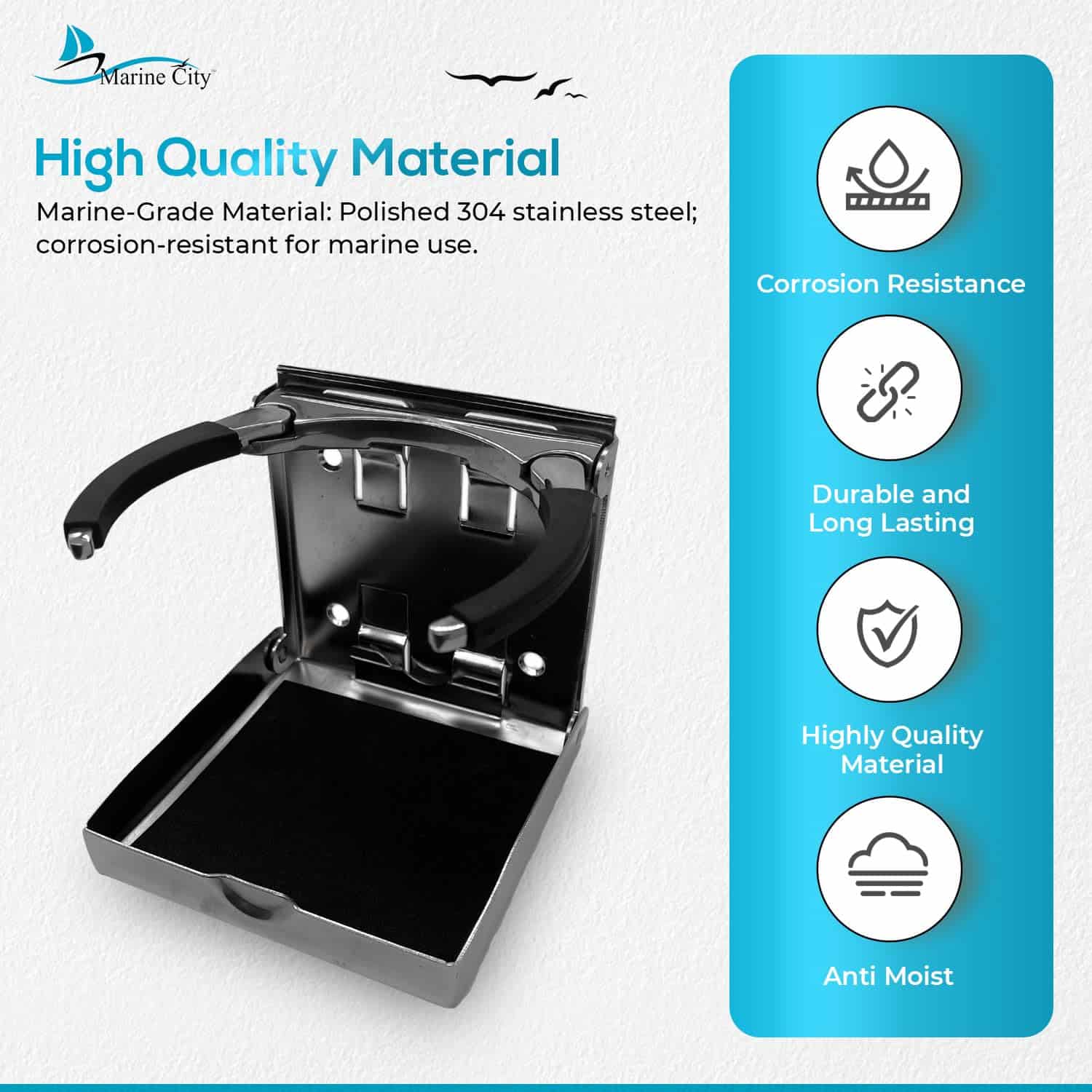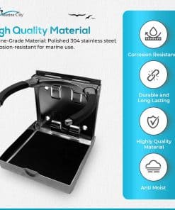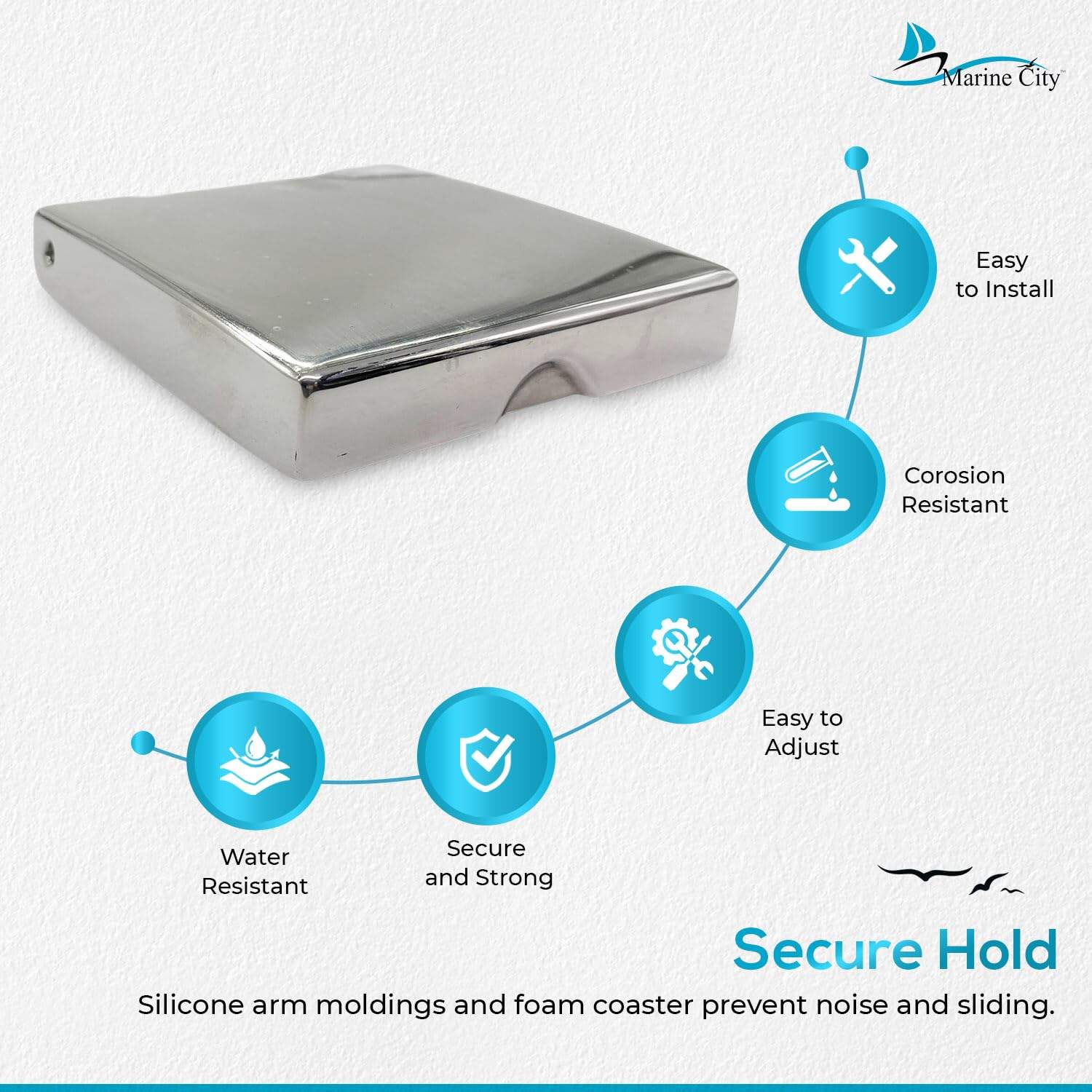 Portavasos plegable ajustable de acero inoxidable 304 de Marine City es la solución perfecta para mantener sus bebidas seguras y a mano mientras navega en su barco, embarcación o RV. Este portavasos de acero inoxidable pulido de grado marino está diseñado específicamente para resistir las condiciones marinas más duras, proporcionando un almacenamiento seguro y conveniente para sus tazas, latas y botellas. Equipado con molduras de silicona en los brazos de retención y un posavasos de espuma en el interior, este portavasos no solo mantiene sus bebidas en su lugar, sino que también reduce el ruido y evita que se deslicen. Con un diseño plegable que ahorra espacio y una instalación sencilla en cualquier superficie vertical plana, este portavasos es ideal para su uso en automóviles, embarcaciones, RV, y más. Aproveche la calidad y durabilidad del portavasos plegable ajustable de acero inoxidable 304 de Marine City para disfrutar de sus bebidas favoritas mientras navega con estilo y comodidad.