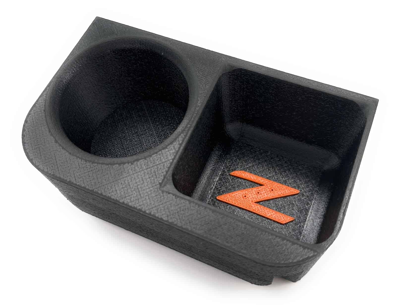 Este portavasos de Spyderbands está diseñado para ajustarse perfectamente en el compartimento de almacenamiento trasero en la consola central del 350Z de 2003 a 2009.