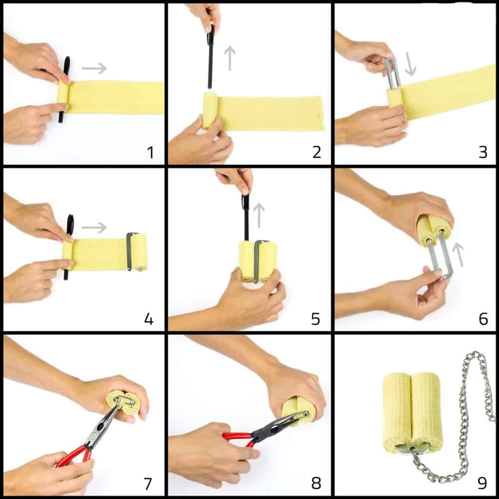Solo 50 cm de mecha de KEVLAR enrollada en una «S», como se muestra en las imágenes instructivas, para obtener una gran absorción de combustible para un tiempo de quemado prolongado.