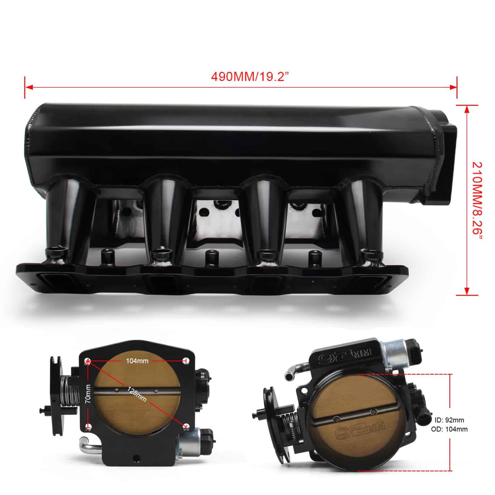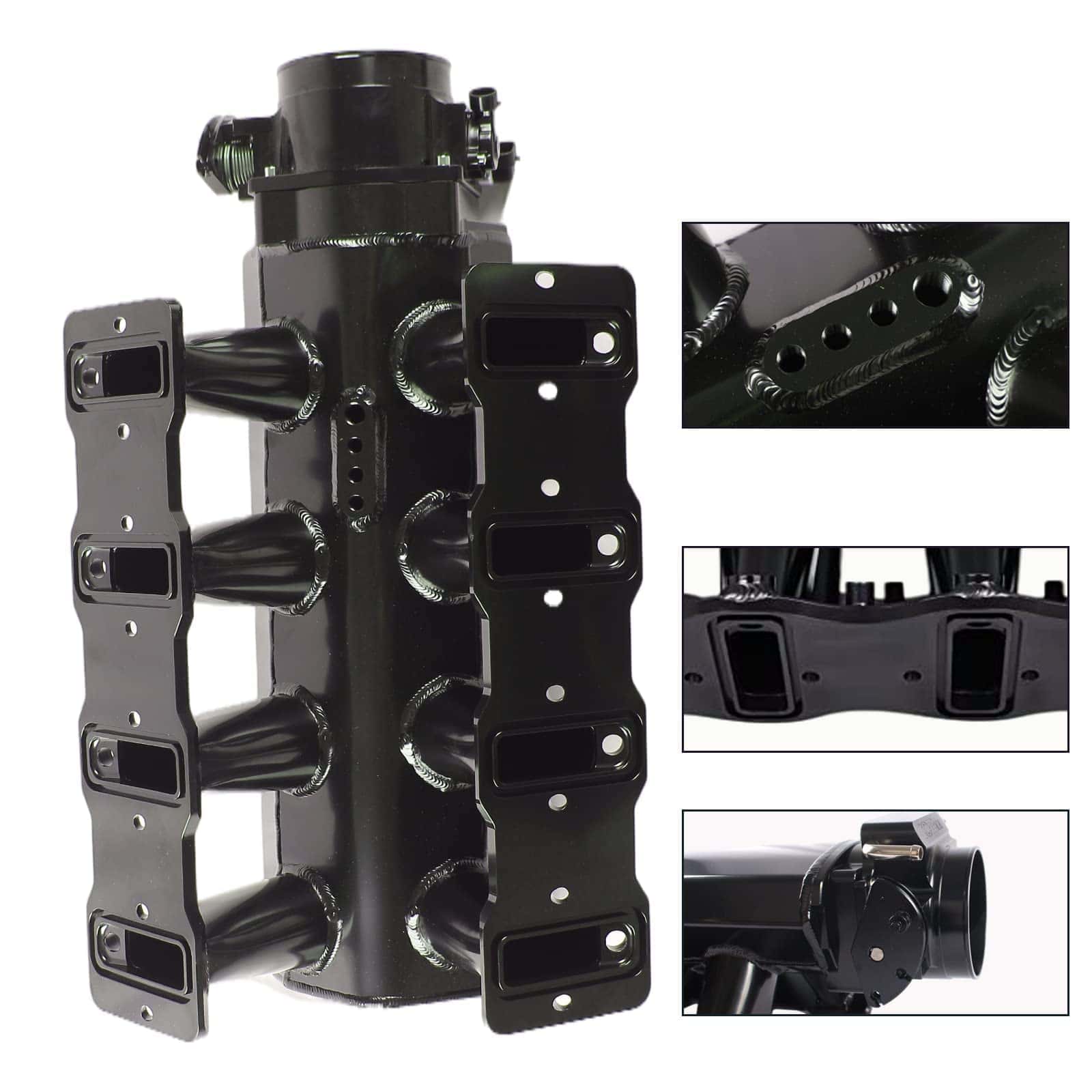 POSENG Para LS LS1 LS2 LS6 Colector de Admisión Compatible con Chevy 4.8 5.3 6.0 6.2 con Kits de Cuerpos de Mariposa de 92mm en negro. Este colector de admisión del motor es compatible con Motores Chevrolet Small Block V8 GEN III/IV (Basados en LS) con Forma de Cabezas de Puerto Catedral, diseñado para Chevy 6.0L 5.7L 5.3L 4.8L LS1 LS2 LS6. Es importante tener en cuenta que es específicamente para admisión LS de 4 pernos con accionamiento por cable, no es compatible con accionamiento por cable. Este modelo de colector LS de admisión también es compatible con numerosos vehículos, incluidos Chevy Corvette 97-04, Pontiac Firebird Formula, Trans AM 98-02, Corvette Z06 01-04, Cadillac CTS V-series 04-05, Chevrolet Corvette 05-07, Chevrolet SSR 05-06, Chevrolet TrailBlazer SS 06-09, Cadillac CTS V-Series 06-07, Pontiac GTO 05-06, Saab 9-7X Aero 08-09. Fabricado con alta resistencia utilizando lámina de aluminio T6061 de 3 mm de espesor y soldadura TIG, este colector de admisión puede soportar hasta 30 libras sin doblarse ni flexionarse con aumento de presión o vacío. El paquete incluye el colector de admisión (sin puerto trasero para sensor de presión del colector), cuerpo de mariposa de 92mm, sensor de posición del cuerpo de aceleración (TPS), juntas, hardware, rieles de combustible, línea de cruce de combustible. Inyector no incluido. Se debe tener en cuenta que no hay instrucciones incluidas en este kit, por lo que se recomienda encarecidamente la instalación profesional para garantizar un montaje correcto.