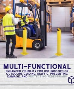 Proteja su negocio y a sus clientes con el poste de bolardo de seguridad BISupply de 36 pulgadas. Este versátil poste de seguridad de tubo de acero es ideal tanto para interiores como exteriores. Cuenta con una base cuadrada de montaje de 8 pulgadas para una mayor resistencia. El acabado en polvo amarillo brillante garantiza una visibilidad mejorada, especialmente durante la noche, gracias a la cinta reflectante negra y amarilla. Los agujeros preperforados facilitan la instalación con pernos de anclaje de 3/4 pulgadas (no incluidos) o puede llenarse con hormigón para una defensa adicional. Evite daños, guíe el tráfico y proteja a sus clientes con este bolardo multifuncional de BISupply.