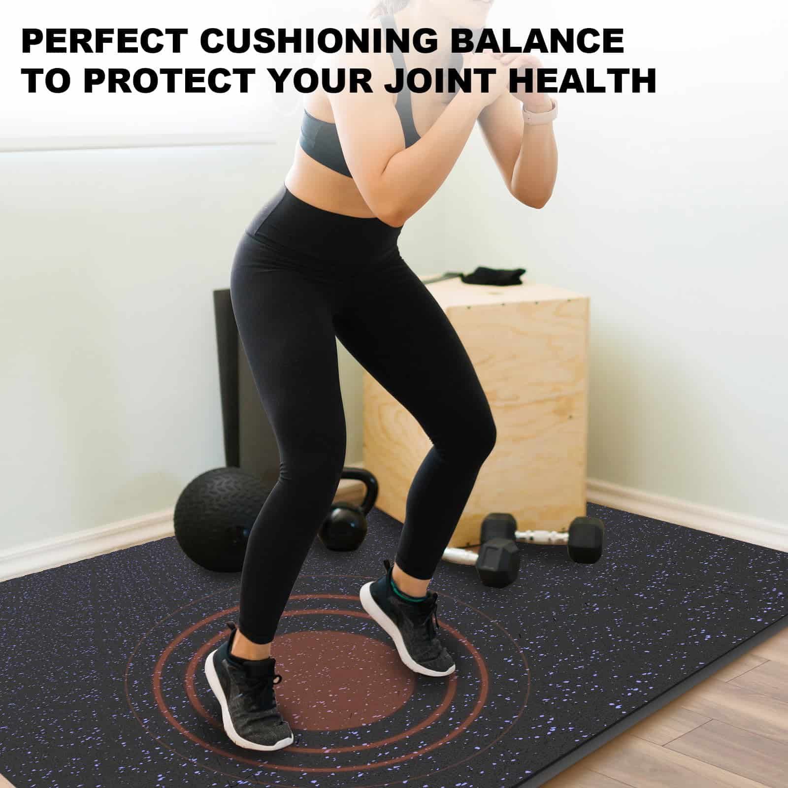 2. Amortiguación Amigable para las Articulaciones: Diseñados pensando en tu comodidad, nuestros tapetes proporcionan una absorción de impactos amplia, reducitendo el impacto en las articulaciones durante el ejercicio. Ya sea que te guste el yoga, HIIT o el entrenamiento de pesas, nuestros tapetes garantizan una experiencia de ejercicio cómoda que es suave en tu cuerpo y en tus pisos.
