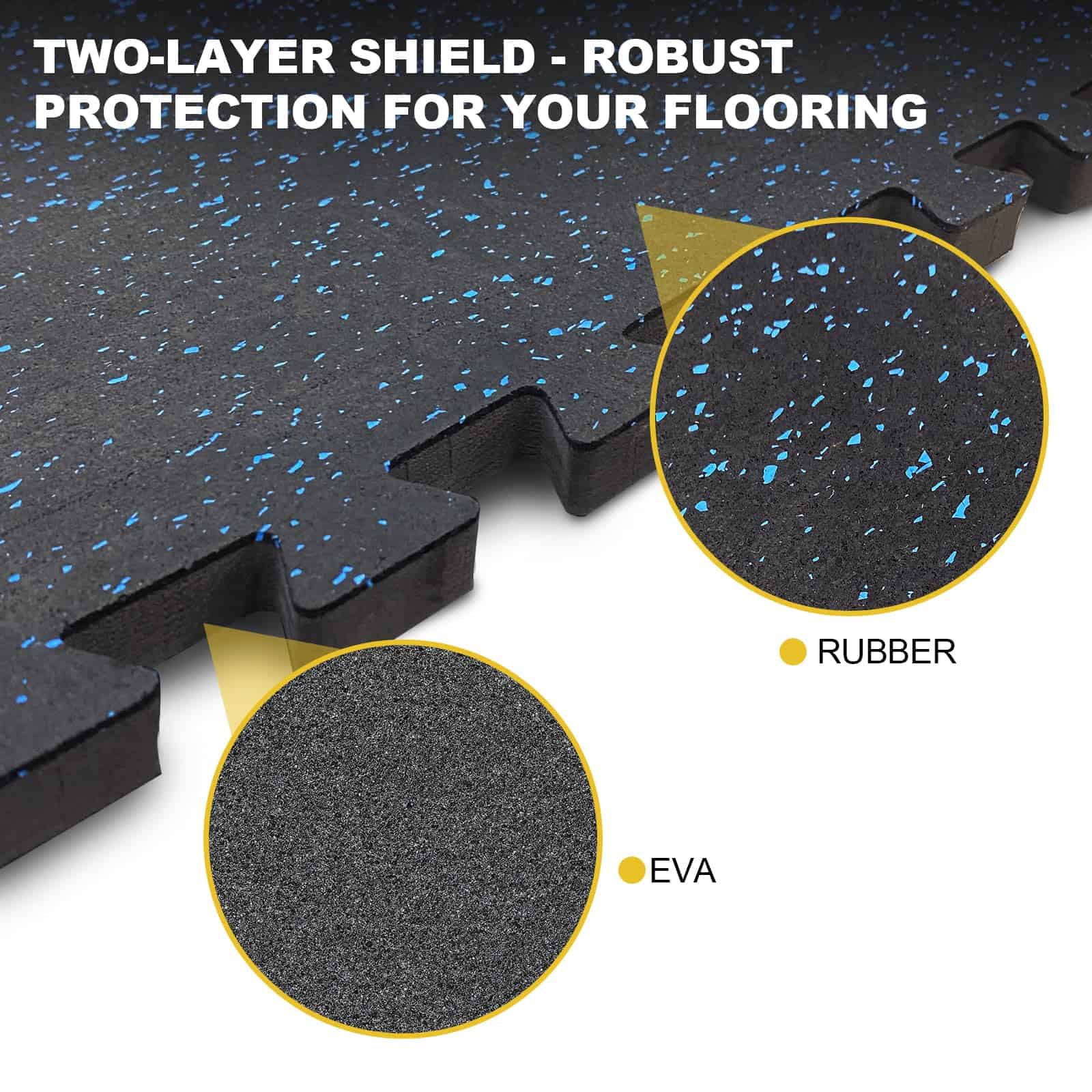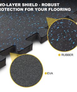 1. Diseño que Ahorra Espacio: Diseñados para priorizar el piso de tu hogar, nuestros tapetes de gimnasio de 0.56 pulgadas de grosor ofrecen una protección superior contra rasguños y abolladuras causadas por equipos de ejercicio. La capa superior de goma densa y el núcleo de espuma EVA resistente garantizan que cada repetición, levantamiento y caída esté amortiguada, protegiendo tus pisos a largo plazo.