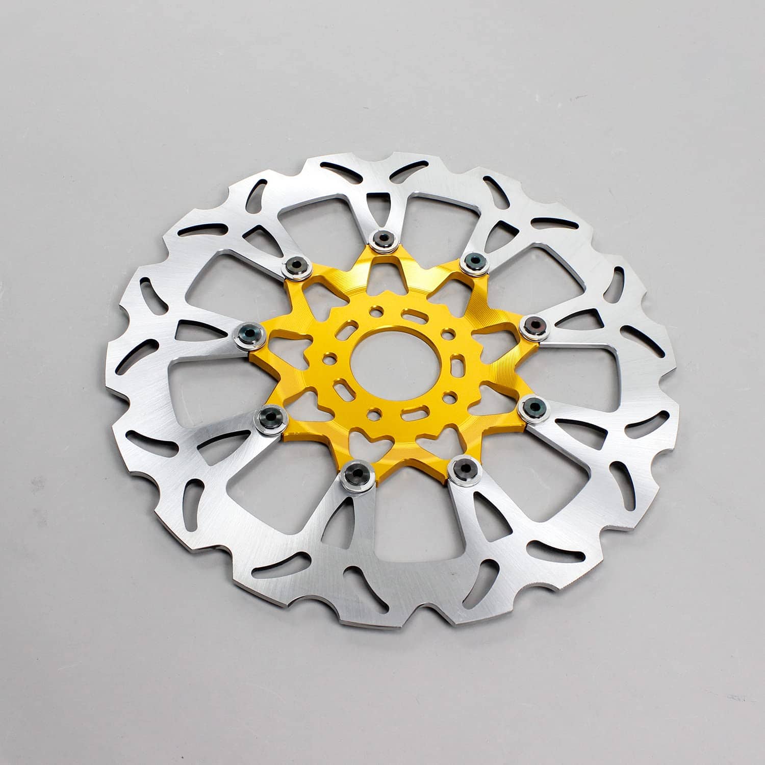 El exterior está hecho de materiales de freno profesionales, el interior está hecho de aluminio 6061 T6, acabado con anodizado dorado.