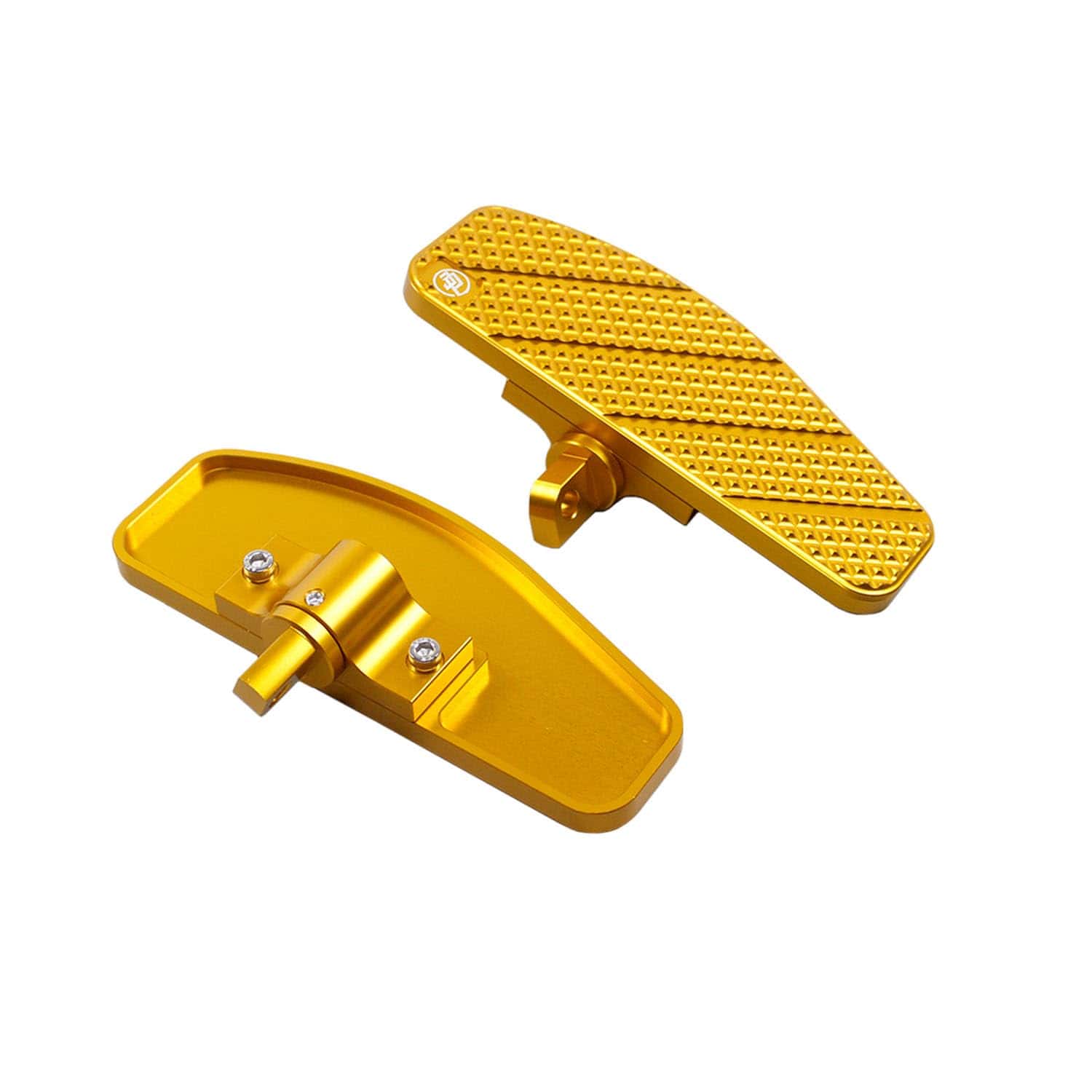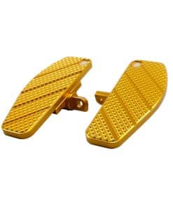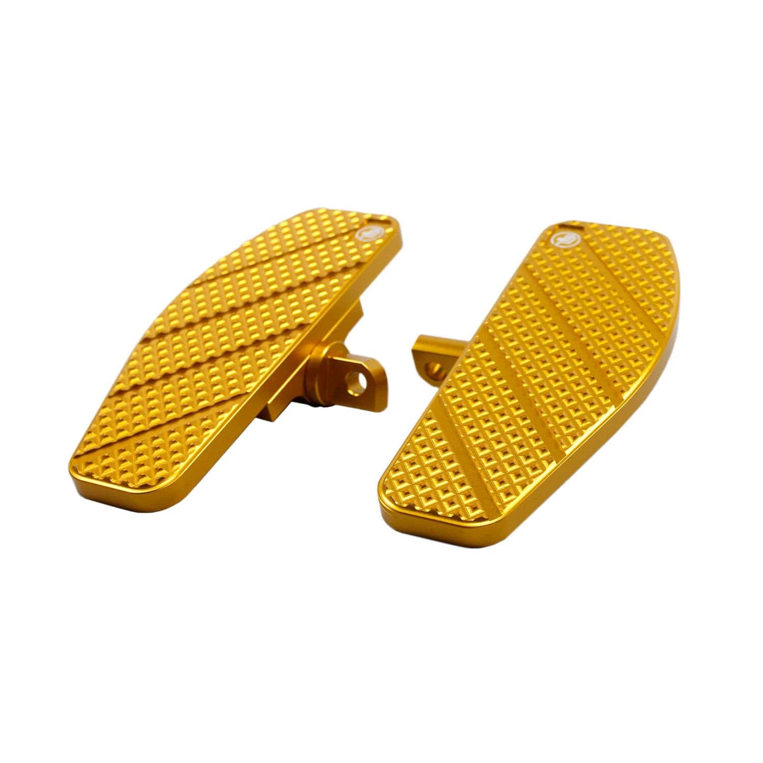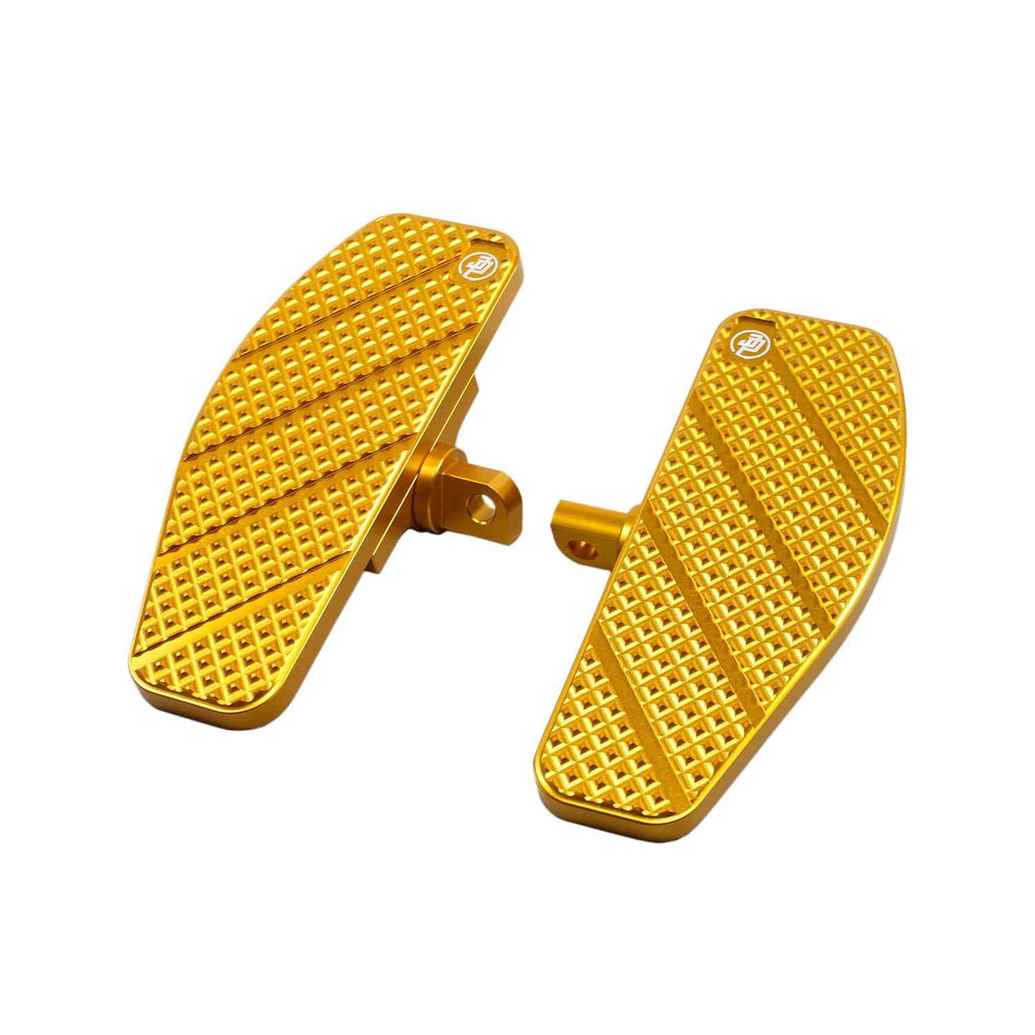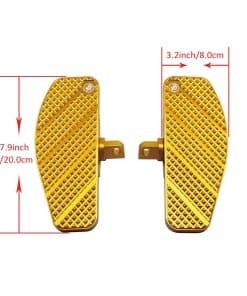 Lugar de instalación: para conductor de jinete Hecho de aluminio billet 6061 T6 Antideslizante con corte de diamante CNC Acabado en dorado anodizado Longitud total: 7.9 pulgadas / 20.0 cm Ancho total: 3.2 pulgadas / 8.0 cm Fácil de instalar Se vende en pares.