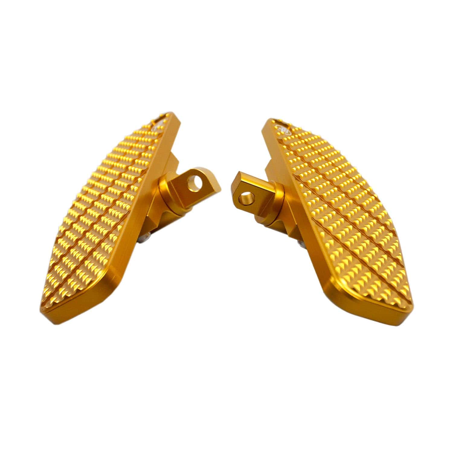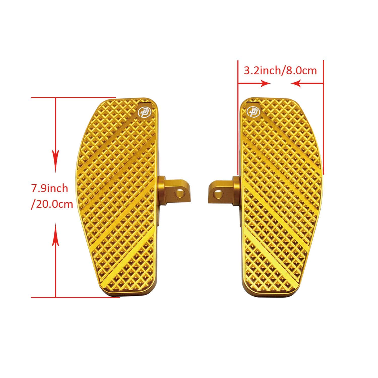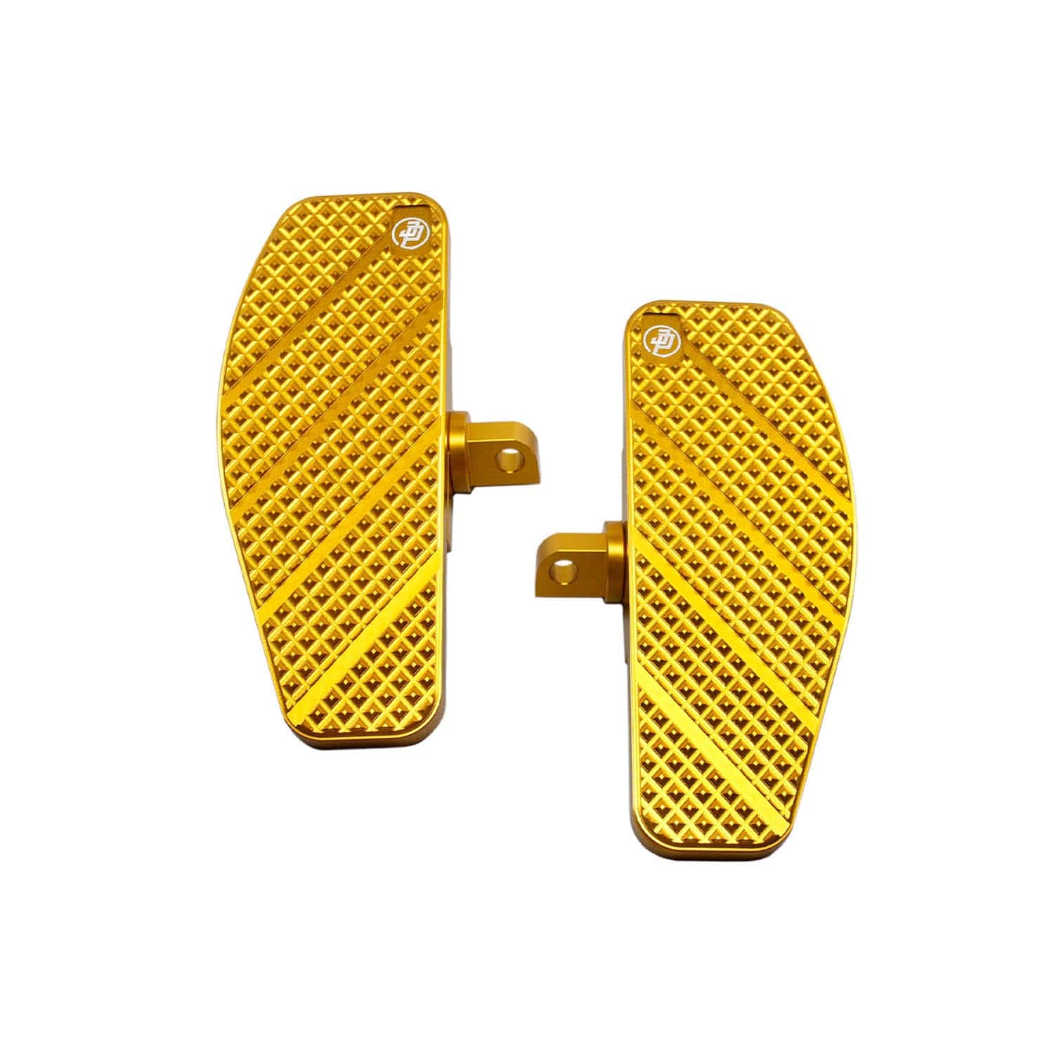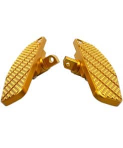 Lugar de instalación: para conductor de jinete Hecho de aluminio billet 6061 T6 Antideslizante con corte de diamante CNC Acabado en dorado anodizado Longitud total: 7.9 pulgadas / 20.0 cm Ancho total: 3.2 pulgadas / 8.0 cm Fácil de instalar Se vende en pares.