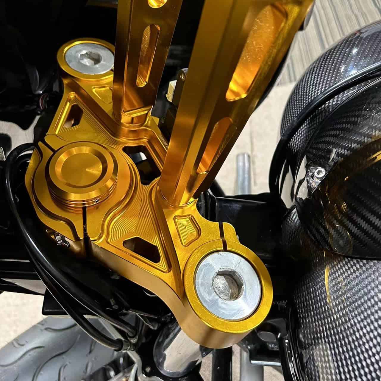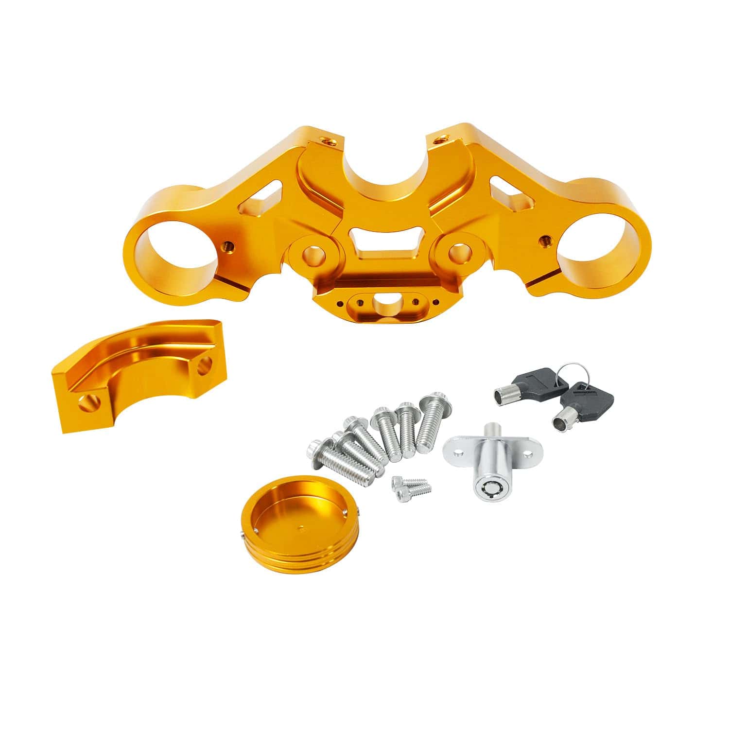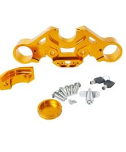 Mejora el manejo y la seguridad de tu motocicleta con este Top Triple Tree Negro con Bloqueo de Manillar, diseñado específicamente para los modelos Road Glide 2015-2023. Fabricado con ingeniería de precisión, este componente de alta calidad mejora tu experiencia de conducción al proporcionar un control y estabilidad superiores en la carretera. El bloqueo integrado del manillar agrega una capa adicional de protección, disuadiendo posibles robos y brindándote tranquilidad al estacionar tu preciado vehículo. Construido con materiales duraderos y atención meticulosa a los detalles, este triple tree promete un rendimiento duradero y un ajuste impecable. Eleva tu paseo con este accesorio esencial que combina funcionalidad, seguridad y estilo.