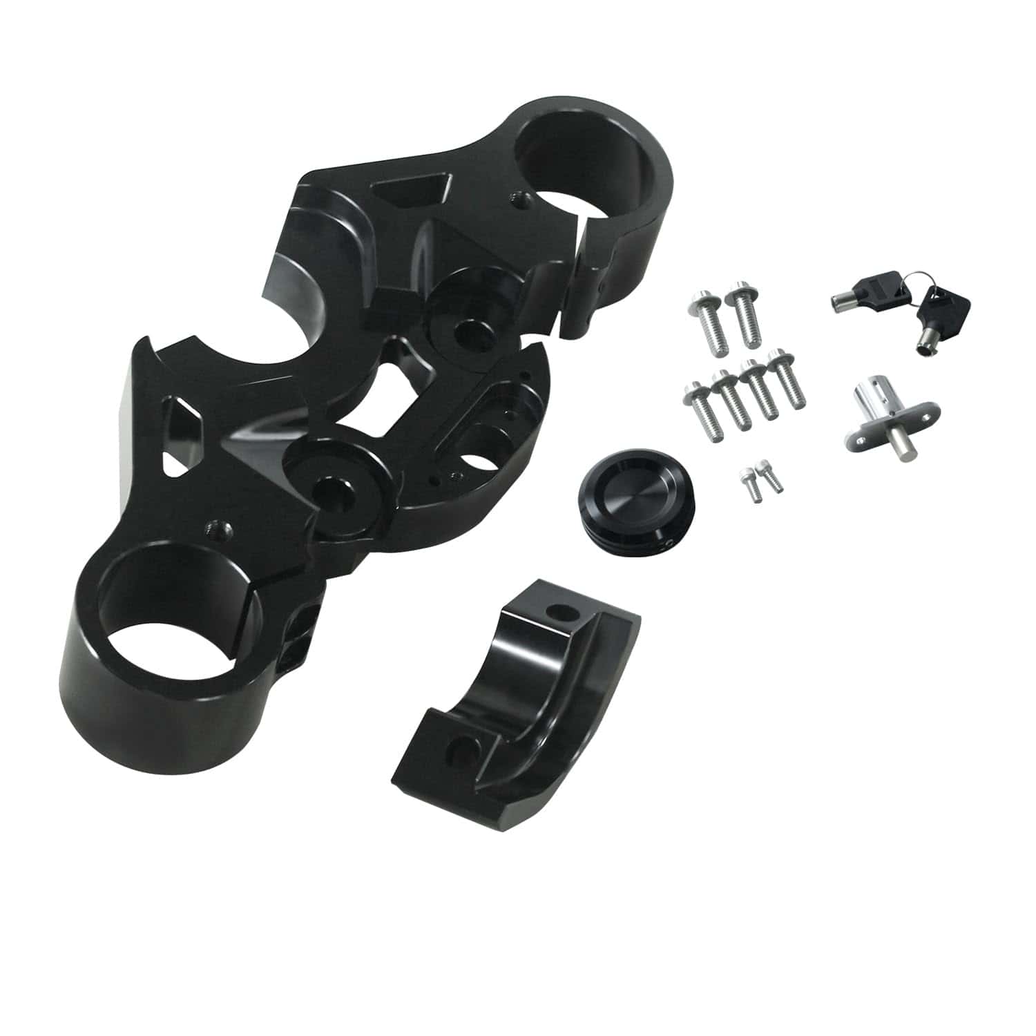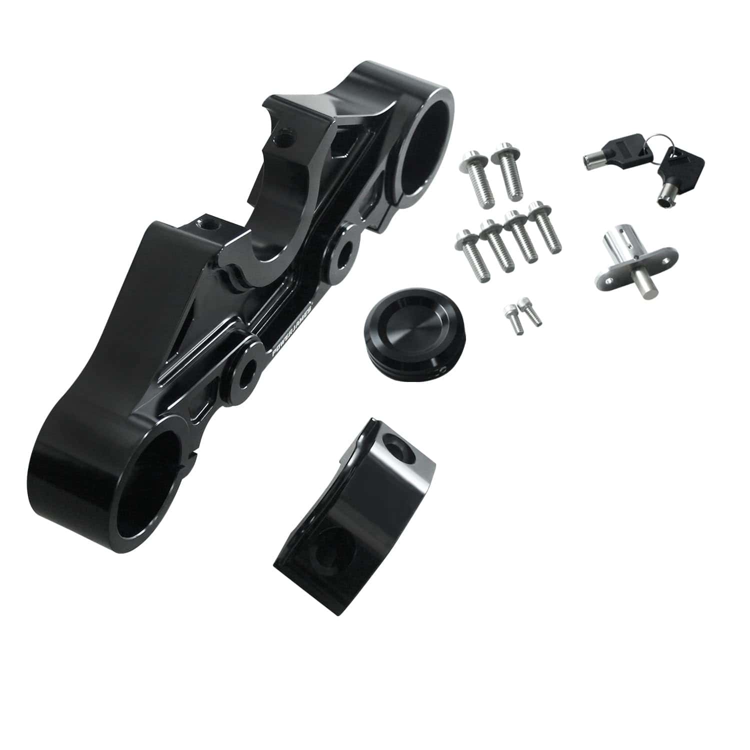 Si mueves los indicadores hacia los elevadores de manillar más altos, este triple árbol te ayudará a decorar tu Road Glide maravillosamente. Mejora la conducción y la seguridad de tu motocicleta con este Triple Tree Negro de aluminio con Cerradura para Manillar, diseñado específicamente para los modelos Road Glide 2015-2023. Fabricado con ingeniería de precisión, este componente de alta calidad mejora tu experiencia de conducción al proporcionar un control y estabilidad superiores en la carretera. La cerradura integrada para manillar añade una capa extra de protección, disuadiendo posibles robos y brindándote tranquilidad al estacionar tu preciado vehículo. Construido con materiales duraderos y atención meticulosa a los detalles, este triple árbol promete un rendimiento duradero y un ajuste perfecto. Eleva tu paseo con este accesorio esencial que combina funcionalidad, seguridad y estilo.