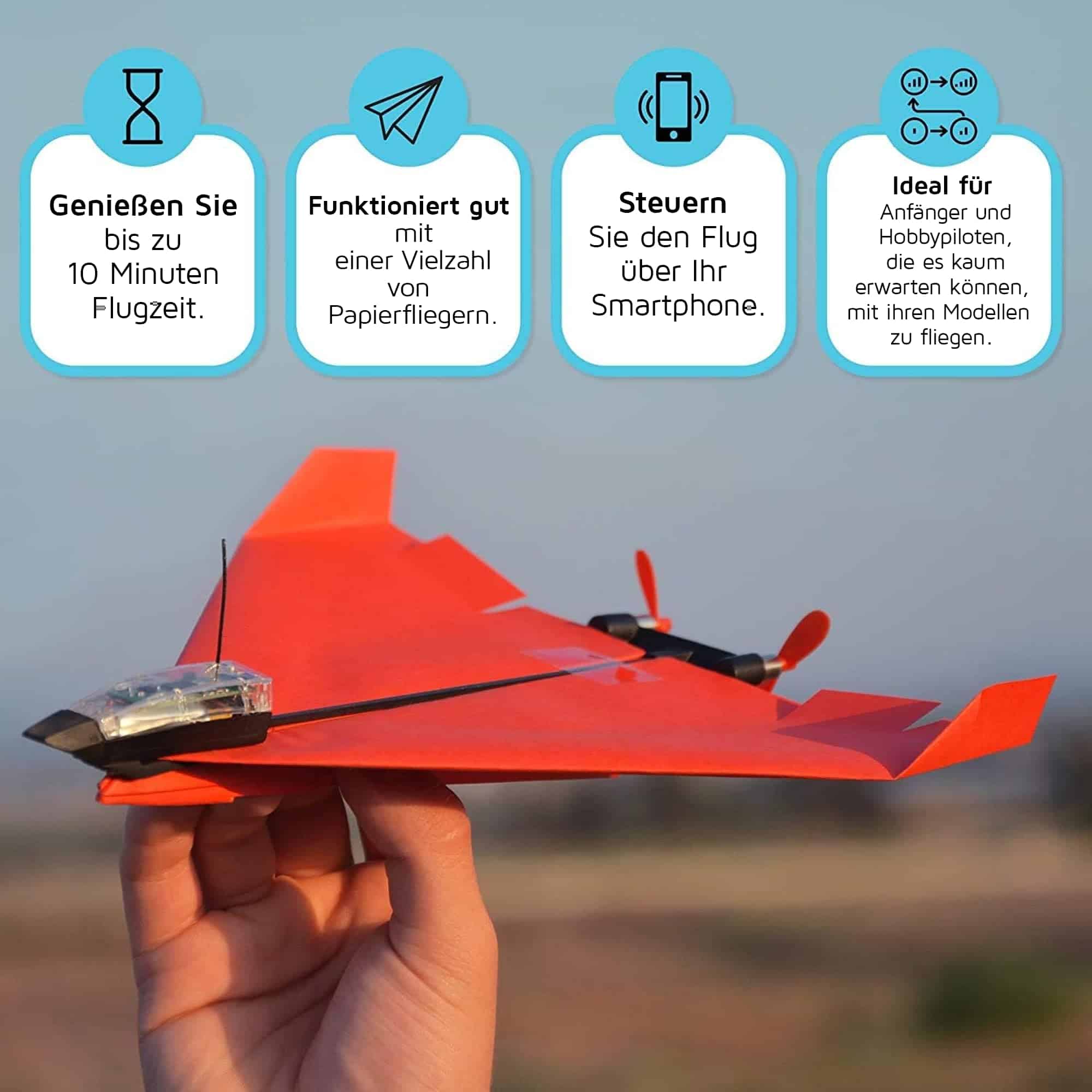 ¡Nunca has visto un avión de papel como este! ¡Esta es la cuarta generación de revolucionarios flyers lanzados en Kickstarter! Con asistencia de piloto automático y un giroscopio de 6 ejes, este sistema de doble hélice involucra a cualquier aficionado, entusiasta, estudiante o inventor.