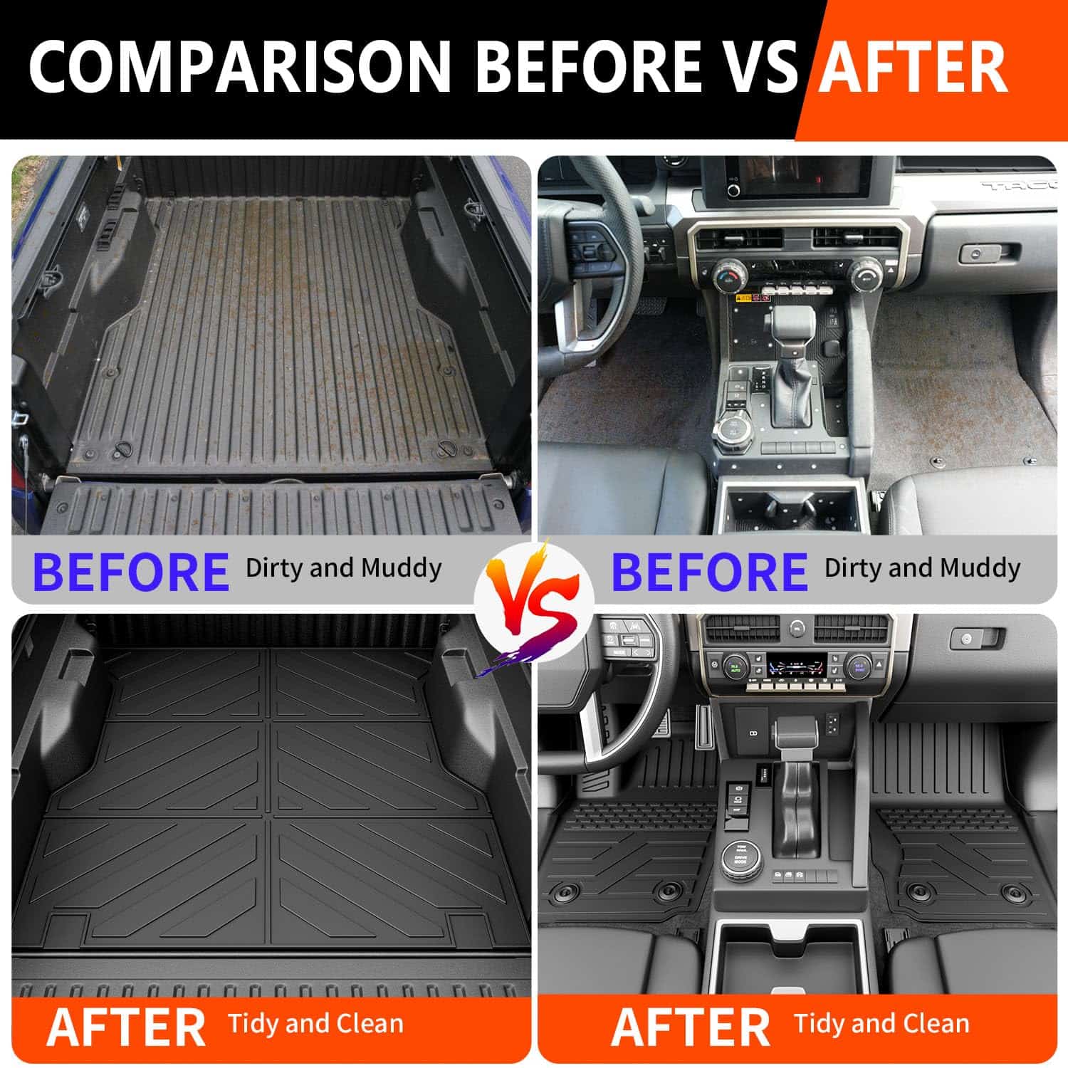 El juego de colchoneta y alfombra de suelo para camionetas es compatible con Toyota Tacoma 2024 2025. Hecho de material de alta calidad TPE, resistente a los arañazos y flexible. Protege tu camioneta y ofrece una protección práctica contra la suciedad, el barro y el pelo de mascotas. Cambia la apariencia de tu vehículo. Fácil instalación, simplemente coloca los tapetes en su lugar. Garantía de satisfacción. Si encuentras algún problema, contáctanos para el servicio postventa.