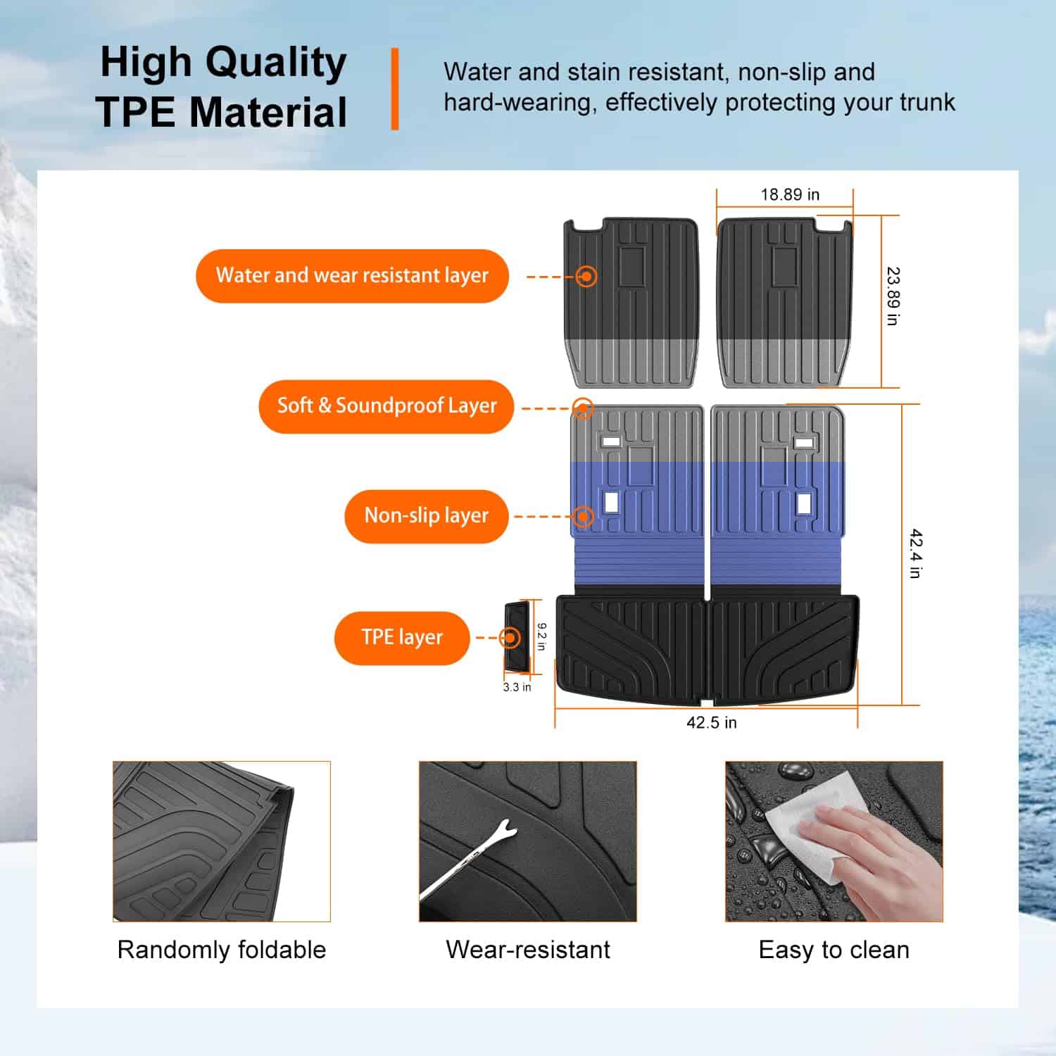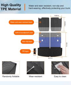 2. Material premium: Nuestro tapete de carga con forro trasero de reemplazo para el GMC Acadia 2017-2023 está hecho de material TPE de alta calidad. Es resistente a los arañazos, flexible y no tiene mal olor. Es seguro para que sus mascotas se acuesten en nuestro tapete para maletero sin olor. Está construido para resistir diversas condiciones climáticas, permaneciendo impermeable al óxido, la ruptura o la rotura, incluso en condiciones extremas de temperatura como el calor abrasador o el frío amargo. Ofrece un rendimiento duradero.