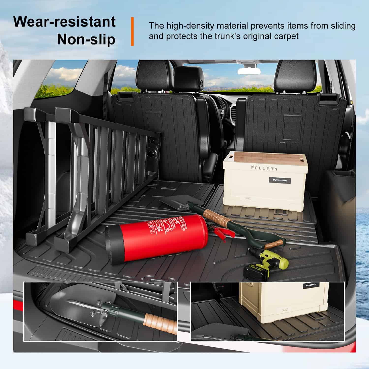 3. Protección integral: El forro del maletero compatible con GMC Acadia puede proteger su maletero y ofrecer protección práctica contra la suciedad, el barro y el cabello de las mascotas. La superficie antideslizante cóncava única y el diseño de borde elevado proporcionan protección adicional para su área de carga. Con la protección de nuestros tapetes, no tiene que preocuparse de que la carga raye o manche la alfombra original. El conductor puede conducir el vehículo con tranquilidad y disfrutar del viaje.
