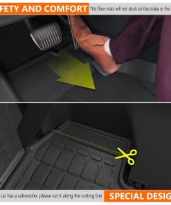1. Material de Alta Calidad: Los tapetes de maletero y de la 3ra fila y la alfombrilla de piso están hechos de material TPE de alta calidad.Son resistentes a los arañazos, flexibles y no tienen mal olor.Pueden durar mucho tiempo.Incluso si los dobla con fuerza, no se estropearán fácilmente.Nuestros tapetes de maletero pueden soportar todo tipo de clima extremo, como días de lluvia intensa o nevadas, etc.Puede limpiar los tapetes con agua y un trapo.