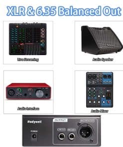 Este preamplificador de micrófono viene con salida balanceada XLR y salida de micrófono y línea estéreo de 6.35mm que se puede conectar con interfaz de audio, mezclador, consola, altavoz de audio y otros dispositivos de audio. Con su diseño de circuito totalmente balanceado único, este preamplificador de micrófono produce un ruido súper bajo y un sonido limpio sin agregar ninguna coloración a sus sonidos. Es perfecto para estudios caseros y profesionales, grabación vocal, podcasts y transmisiones en vivo. La carcasa de metal negro de este preamplificador de micrófono no solo lo hace resistente, sino que también le permite eliminar eficazmente la mayoría de las interferencias EMC, lo que resulta en un bajo ruido. Es un dispositivo pequeño y ligero que es fácil de transportar y almacenar. Además, ofrecemos una garantía de dos años contra cualquier defecto de calidad para este producto.