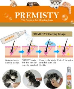 ¡Presentando la innovadora fórmula de limpieza de PREMISTY, ¡SIN jabón! Recupera una sensación suave y sedosa en el pelaje de tu mascota y elimina el olor después de horas de diversión sudorosa en un instante con PREMISTY! Su perfil libre de químicos es perfecto para perros, gatos, hurones u otros miembros peludos de la familia con un olfato sensible. Ideal para usar en todo el cuerpo, esta solución sin enjuague te ayuda a lidiar de forma rápida y efectiva con el olor corporal, la suciedad y las manchas de pelo, ¡todo a la vez!
