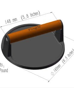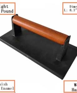 Esta Prensa de Carne de Hierro Fundido con Mango de Madera es una herramienta imprescindible en la cocina para los amantes del bacon. Cuenta con una construcción de hierro fundido resistente y duradera, ideal para aplastar el bacon a la perfección. El mango de madera proporciona un agarre cómodo y añade un toque de elegancia a la prensa. Diseñada con un tamaño estándar de Redonda 6.5″ y Rectangular 4.3X8.3″, es perfecta para utilizar con una variedad de carnes e ingredientes. Ya sea cocinando un banquete de hierro fundido o preparando un jugoso filete, esta prensa de hierro fundido es la herramienta perfecta para el trabajo.