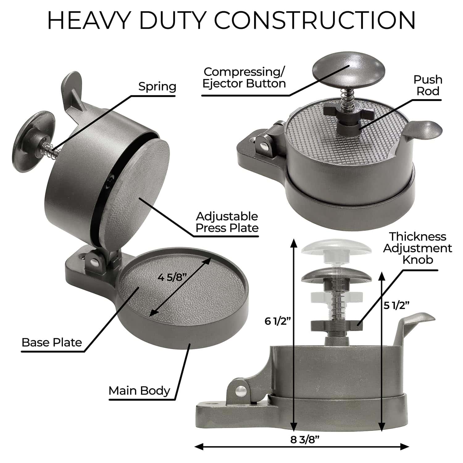2. GROSOR Y PESO AJUSTABLE: Personaliza tus hamburguesas desde 1/4″ hasta 1 1/2″ de grosor y de 1/4 lb a 3/4 lb. Ya sea que ames las hamburguesas aplastadas o las hamburguesas gourmet gruesas, esta prensa lo hace todo.