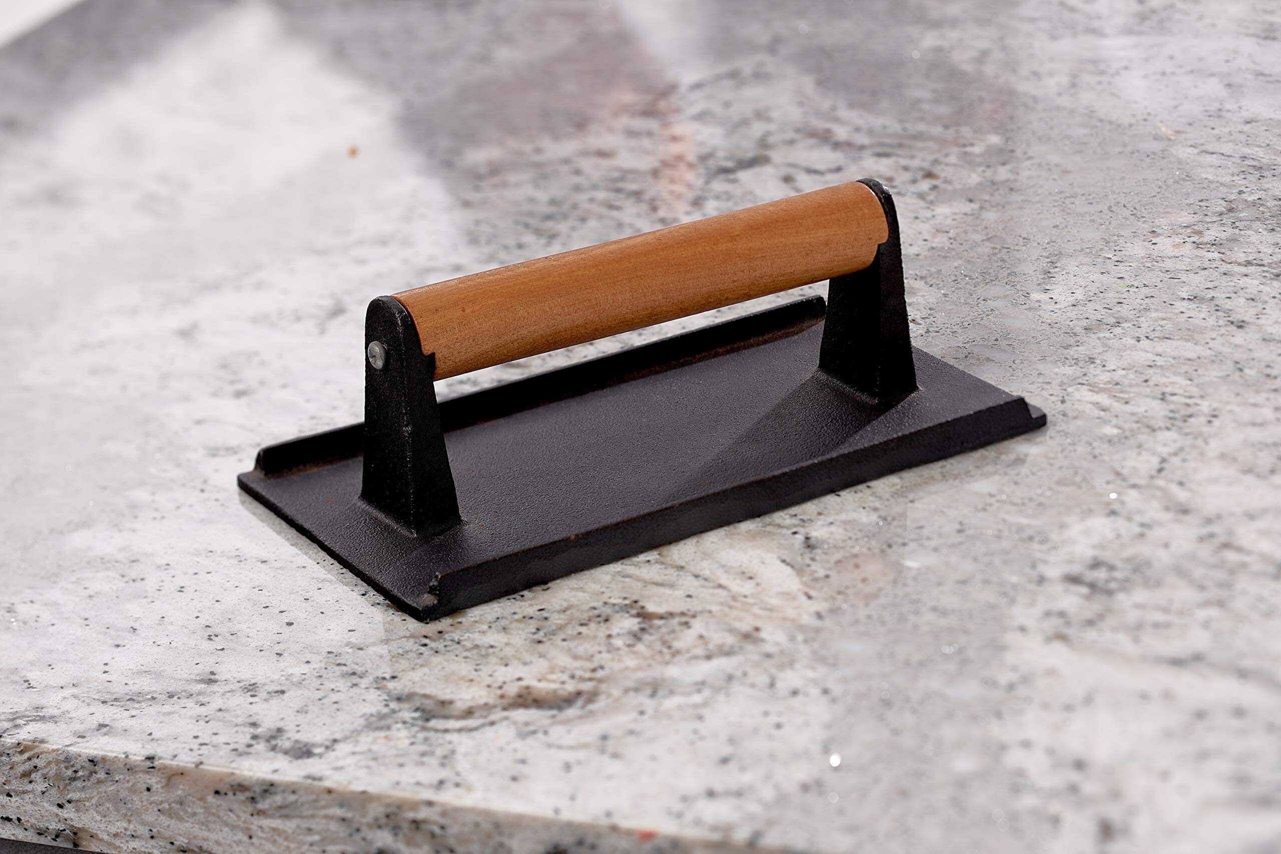 Prensa de Parrilla Rectangular Resistente con Mango de Madera 9″ x 5″