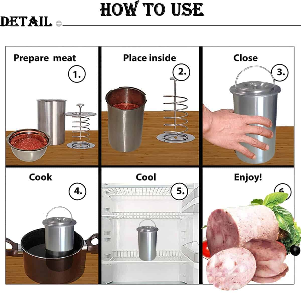 1. Elaborado con acero inoxidable de grado alimenticio de alta calidad, este molde para jamón de carnes frías tiene una capacidad de 1 litro, perfecto para hacer de 1 a 2 libras de carnes frías. Incluye un termómetro multifuncional para un control preciso de la temperatura al cocinar.