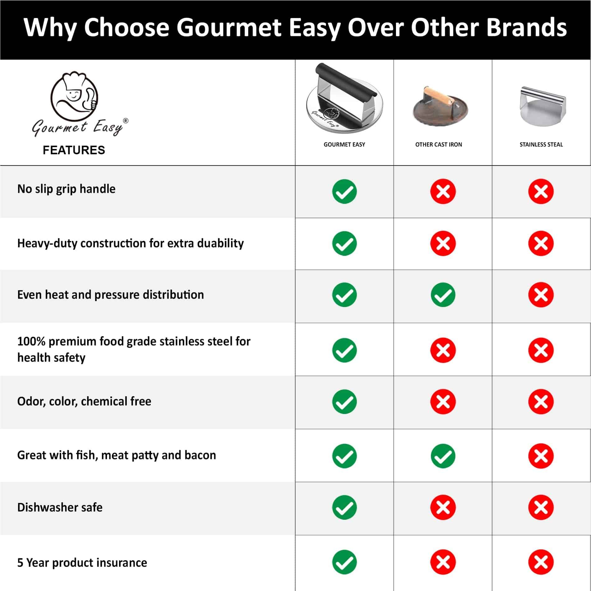 Prensa para hamburguesas de acero inoxidable de 2 libras,