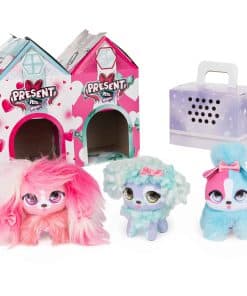 ¡Experimenta un trío de sorpresas emergentes con el Present Pets Minis Fluffy BFFs 3-Pack! ¡Present Pets Minis son las mascotas de peluche adorables con un emocionante desembalaje! Dentro del Fluffy BFFs 3-Pack, encontrarás tres mascotas exclusivas suaves e inspiradas en lo esponjoso que no podrás encontrar en ningún otro lado, un certificado de adopción, una caja de casita de perro de lujo, una caja de transportín y tres hojas de pegatinas. Rasga la funda exterior del embalaje y usa el asa para quitar la caja de transportín que se encuentra en la parte superior. Luego, levanta la pestaña de la caja más grande y observa cómo un lado se transforma y se abre de una caja de regalo a una casita de perro deluxe súper linda para tus animales de peluche. ¡La parte superior de la caja se convierte en un techo y la puerta izquierda se abre para revelar tu primera mascota misteriosa de 3 pulgadas suave y achuchable y su hoja de pegatinas a juego! Repite la revelación en el lado derecho de la caja para conocer a tu segunda mascota, luego abre la caja de transportín para encontrar tu tercer juguete de peluche esponjoso y descubre su hoja de pegatinas a juego, una hoja de colección y el certificado de adopción. Completa el certificado con los cumpleaños de tu trío y ponles nombres especiales a tus amigos. ¡Consulta los símbolos del certificado de adopción para descubrir sus divertidas personalidades! ¡Personaliza la casita de perro deluxe y la caja de transportín con las pegatinas y juega con tus mascotas o muéstralas en su interior! Cada caja presenta gráficos que combinan con el tema de Fluffy BFFs. ¡Para descubrir aún más diversión, busca el Galaxy Trio 3-Pack y colecciona todos los paquetes individuales de Present Pets Minis, los regalos perfectos para niñas (cada uno se vende por separado)! ¡Lleva a casa un trío de Present Pets Minis con el 3-Pack Fluffy BFFs y descúbrelos para una sorpresa emergente deluxe!