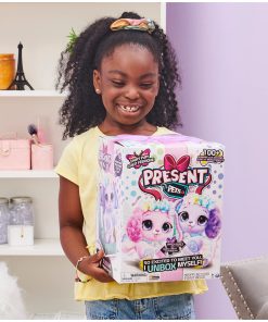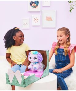 ¡Han llegado nuevas razas de Present Pets! Present Pets son los únicos regalos para niñas que se desempaquetan solos. Dentro de cada caja temática de Fairy Pup hay un adorable perrito Poodle interactivo que espera especialmente para ti. ¡Está tan emocionada de conocerte que sale a patadas de su propia caja de regalo! Con uno de los dos posibles Fairy Pups disponibles en cada caja, no sabrás qué perrito Present Pets estás obteniendo hasta que se desempaque solo. Para comenzar la gran revelación, desenvuelve la capa exterior de la caja y tira de la etiqueta del regalo. ¡La caja comenzará a temblar mientras tu perrito de fantasía ansiosamente sale a patadas! ¡El panel frontal se abre, revelando cuál Fairy Pup Present Pets está dentro: Missy o Blossom! Cada Fairy Pup presenta una corona de flores coloridas, falda de tul, alas de hada iridiscentes, ojos expresivos y un cuerpo suave para empujar. ¡Es tan lindo! Cuando se revele, tu perrito cantará una canción especial de desembalaje mágica! Descubre la animada personalidad de tu mascota mientras te unes y juegas juntos. ¡Le encanta que la acaricien! ¡Acariéle la cabeza y le dará besos y dulces arrullos con gusto! ¡Hazle cosquillas en la barriga para que se emocione de jugar! ¡Su cola se moverá más rápido, mientras golpea y arrastra las patitas y suelta la risa de cachorro más linda! ¡Tu perrito incluso reconoce cuando le hablas! Para más sorpresas divertidas, cada Fairy Pup tiene dos juegos de ladridos de respuesta temáticos que puedes jugar juntos. ¡En Eco Encantado, habla con tu perrito y ella te imitará con ladridos! Para jugar a Mensajes Mágicos, tu perrito ladrará un número de veces ladra de vuelta el mismo número de veces y ¡gana! Con más de 100 sonidos y acciones, Present Pets hacen realidad la verdadera felicidad de lo que es ser sorprendido con tu propio perrito. Los juguetes Present Pets para niñas de 5 años en adelante son excelentes regalos para niños y hacen que cualquier ocasión de regalo sea extra especial. Incluye 6 pilas AAA. ¡Desempaqueta todos los Present Pets, incluidos los Princess Pups Mazie y Cici (cada uno se vende por separado) y lleve a casa una experiencia de desempaquetado inolvidable que toda la familia disfrutará! ¿Qué perrito obtendrás