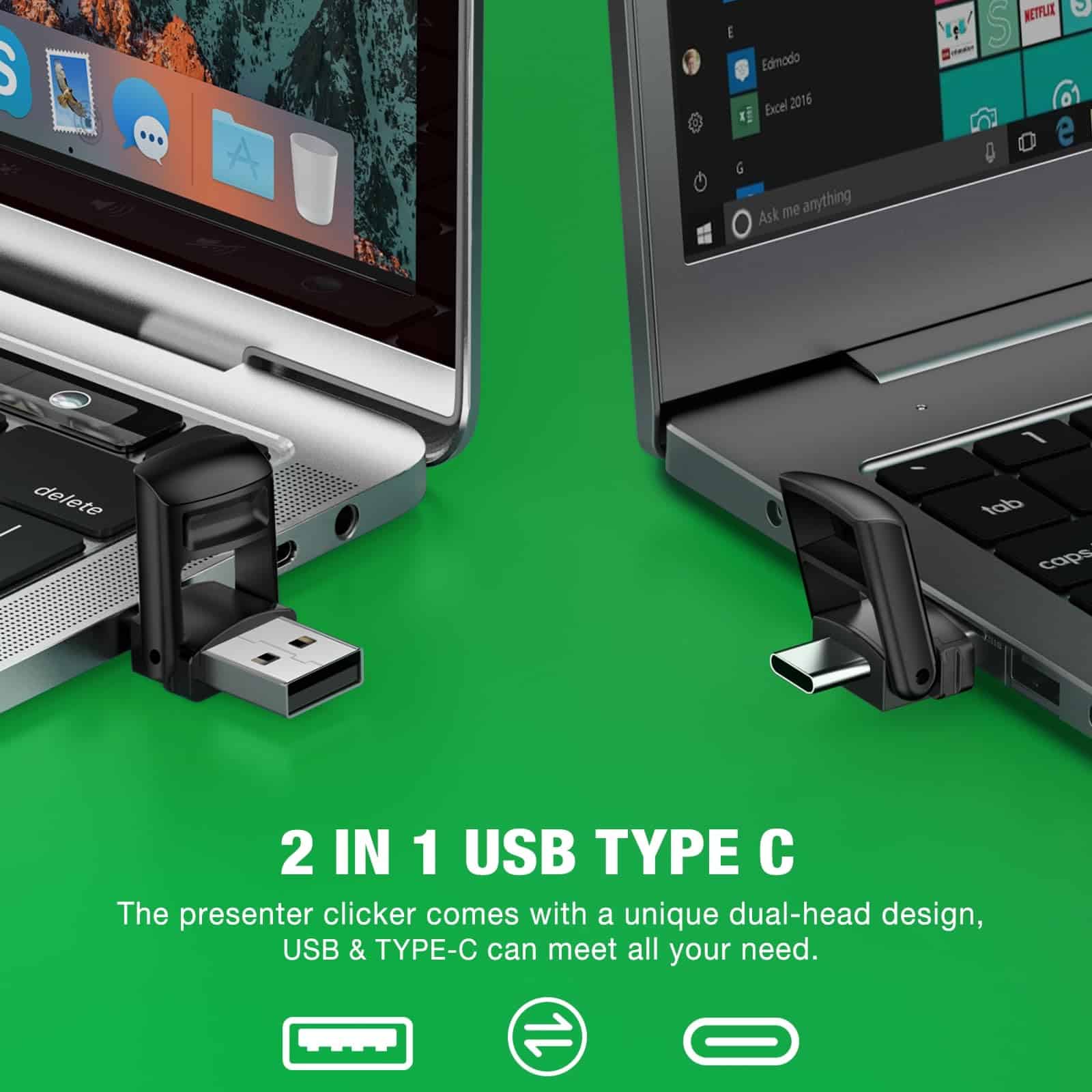 Presentador inalámbrico Clicker USB Tipo C 2 en 1 con Luz