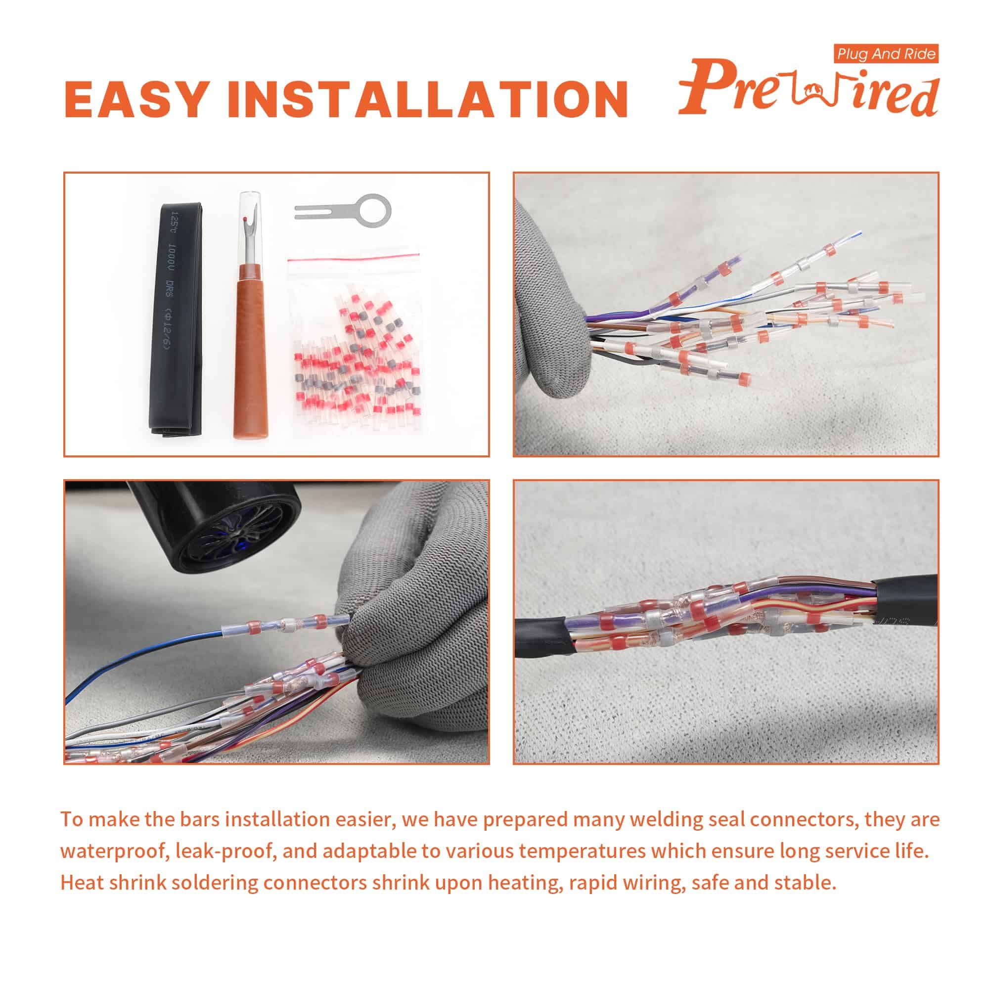 4. Instalación simplificada: Hemos hecho la mayor parte del trabajo pesado preinstalando los cables CAN-Bus y de los calentadores de puños. Ahora, aquí está la acción real: un poco de recorte. Corta tu cableado existente y nuestro cableado precableado, luego conéctalos como un profesional. ¿Por qué el corte? Reconocemos la realidad del espacio limitado del manillar. Evita el dolor de redireccionamiento y comienza a andar en poco tiempo. Tu paseo, tus reglas, hazlo más fácil.