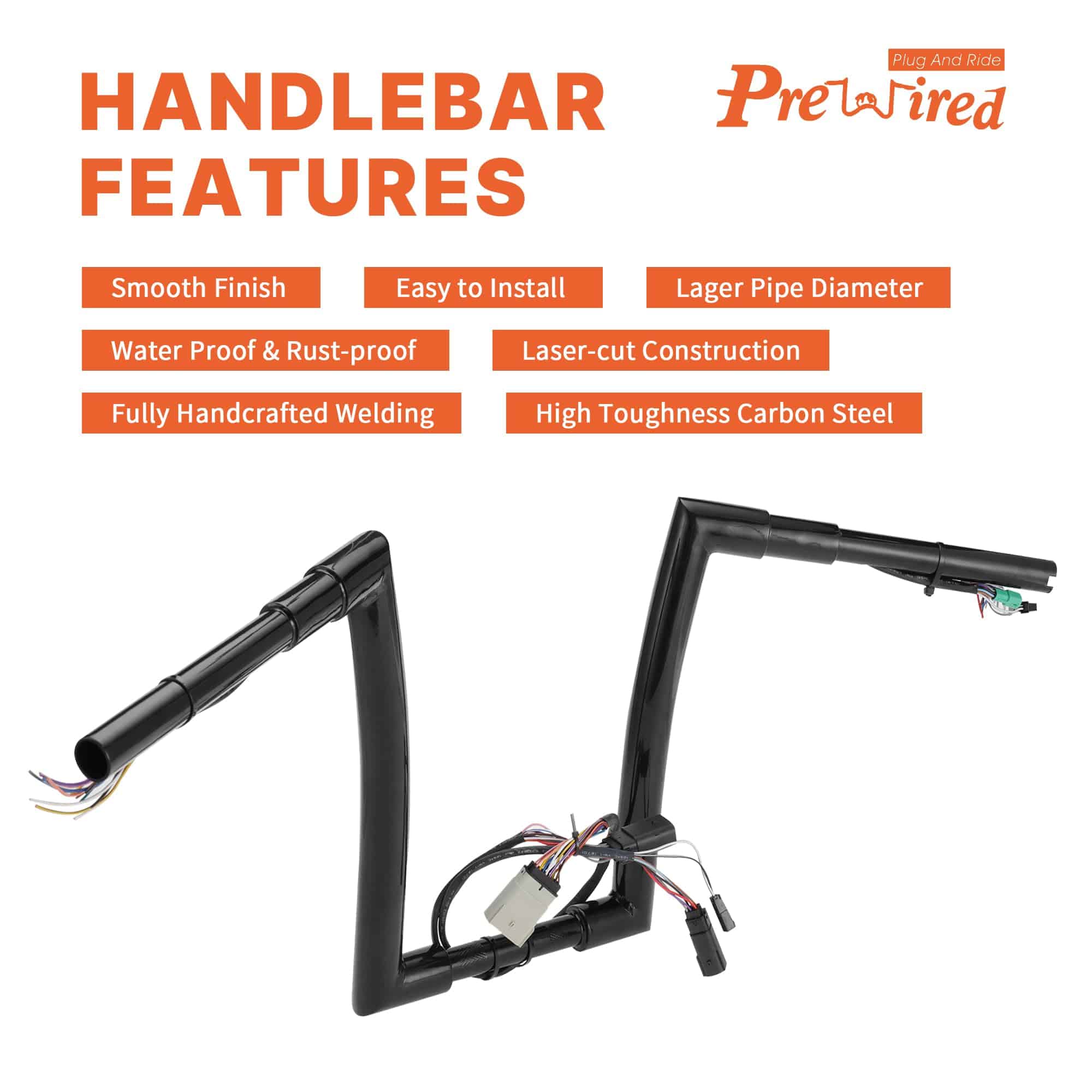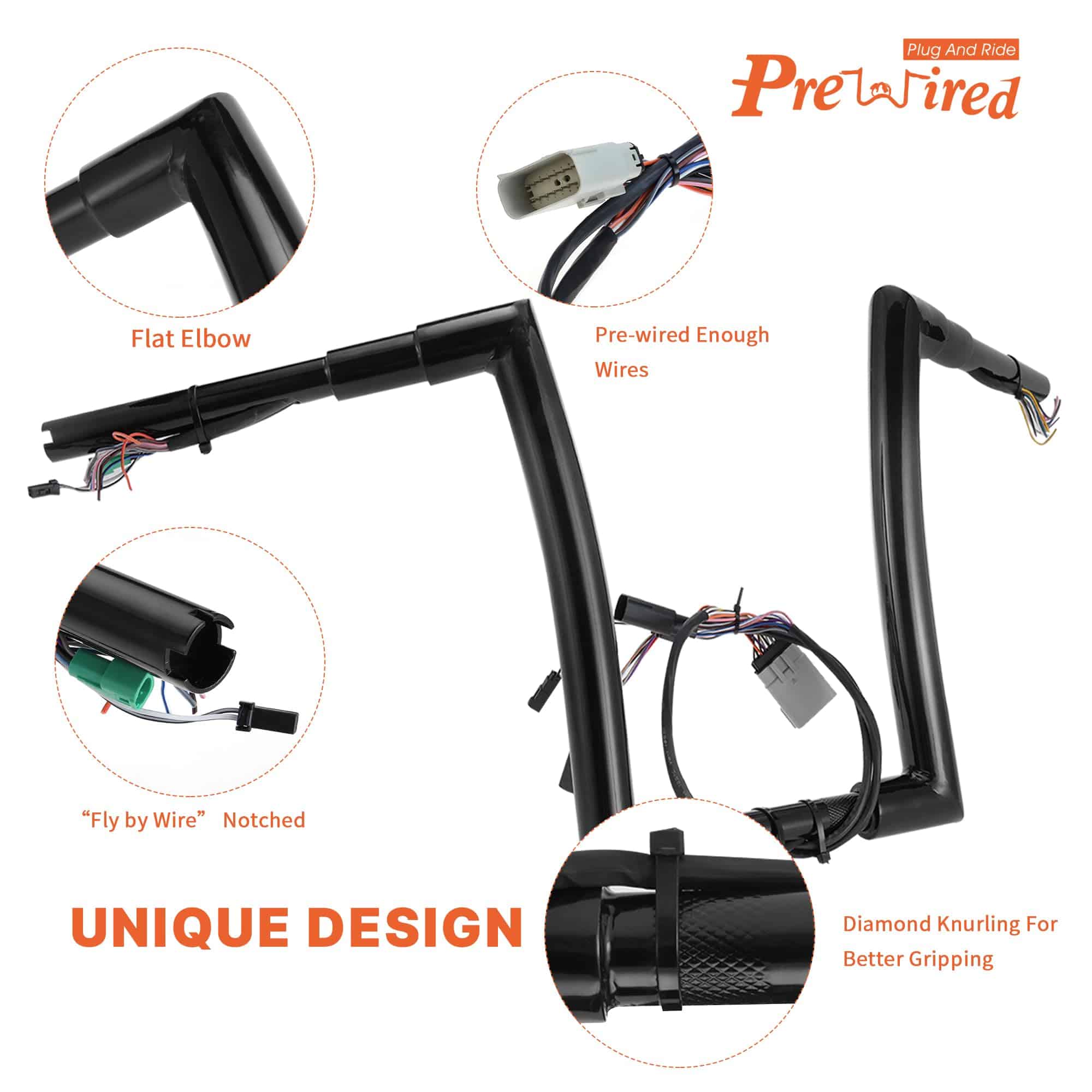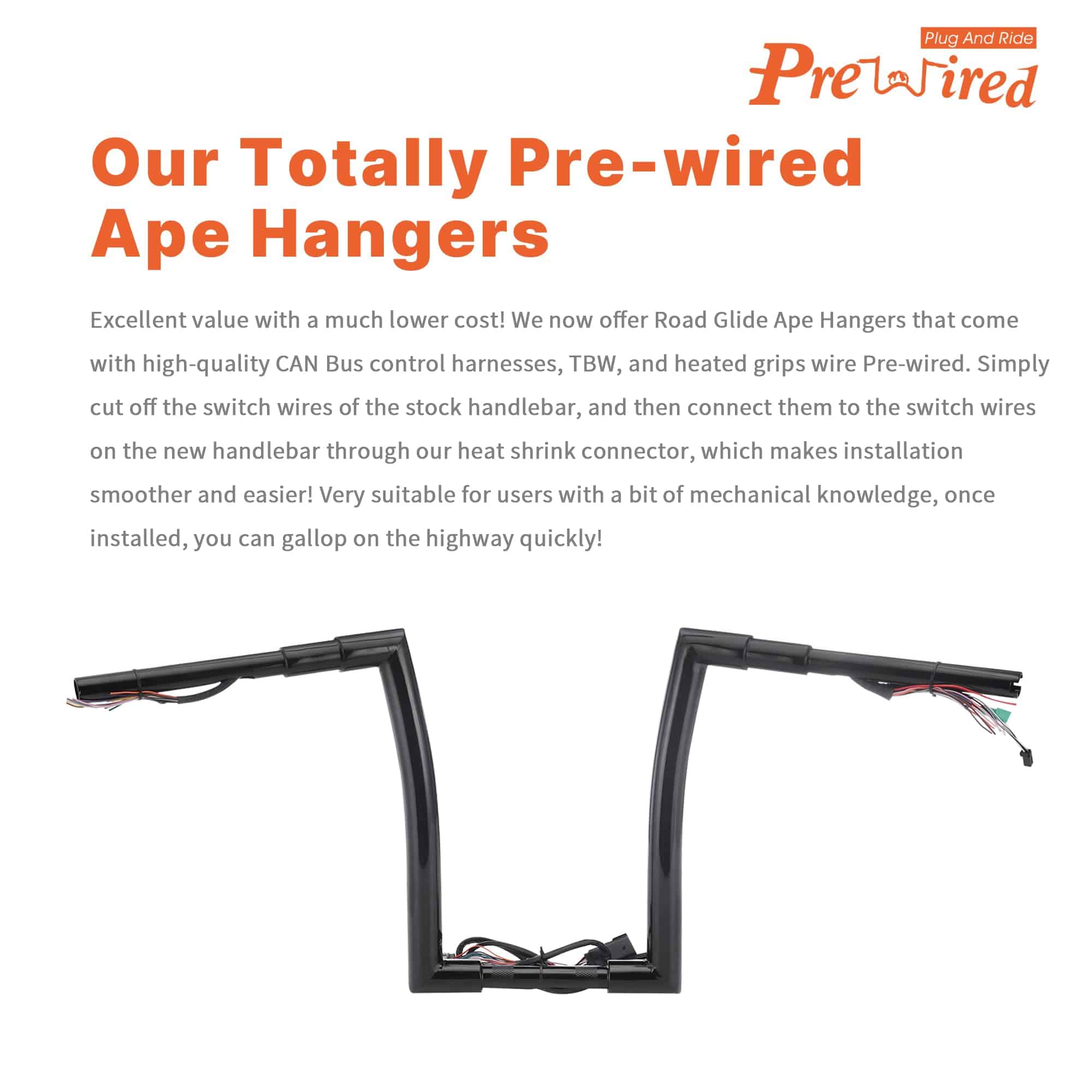 Prewired 14″ Rise Pre-wired Ape Hangers Road Glide