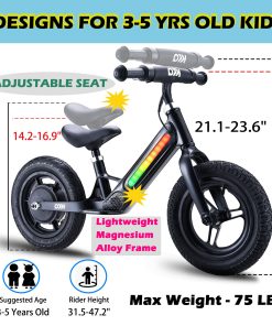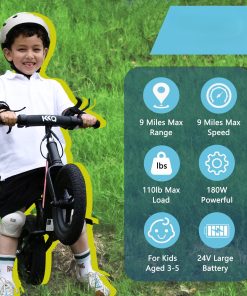 La bicicleta eléctrica infantil PRINIC es el regalo perfecto para niños exploradores jóvenes que buscan una emocionante experiencia de montaje. Con manillares y asientos ajustables, garantiza un ajuste perfecto a medida que su hijo crece. El diseño ligero y resistente del marco de aleación de magnesio lo hace ideal para niños de 3 a 6 años. Equipado con un motor de 180W y una batería de iones de litio de 24V 2.5AH, la bicicleta puede viajar hasta 9 millas y proporciona 30-50 minutos de tiempo de montaje. Las vibrantes tiras de luces LED multicolores ofrecen una mejor visibilidad durante los paseos nocturnos, creando una emocionante experiencia de colores en movimiento. Con dos configuraciones de velocidad, los niños pueden disfrutar de una conducción estándar de 5MPH o aventurarse a 9MPH. El freno EBS y la asistencia de deslizamiento hacen que la parada sea segura y estable, brindando a los padres tranquilidad. ¡Descubre la diversión y la emoción con la bicicleta eléctrica PRINIC para niños!