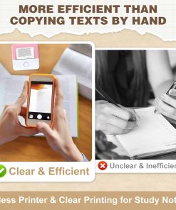 4. Tamaño compacto y portátil: Impresora térmica mini para teléfono, aspecto elegante y lindo, tamaño compacto y ligero, se puede llevar en una mochila o bolso, colocar en un escritorio, escritorio de oficina o cocina sin ocupar espacio, puedes registrar notas de estudio o planes de trabajo en cualquier momento para satisfacer tus diversas necesidades de impresión.