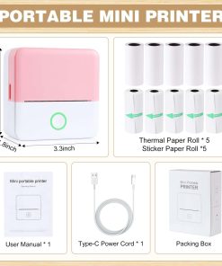 1. Impresora térmica personalizada sin tinta: La impresora de etiquetas sin tinta utiliza tecnología de impresión térmica y está equipada con 5 rollos de papel de impresión adhesivo y 5 rollos de papel de impresión térmica, impresión sin tinta, el papel térmico de 2 pulgadas de ancho se puede cortar libremente a la longitud o forma, así como el tamaño de las etiquetas para crear tus propias ideas de pegatinas en cualquier momento y lugar (solo en blanco y negro).