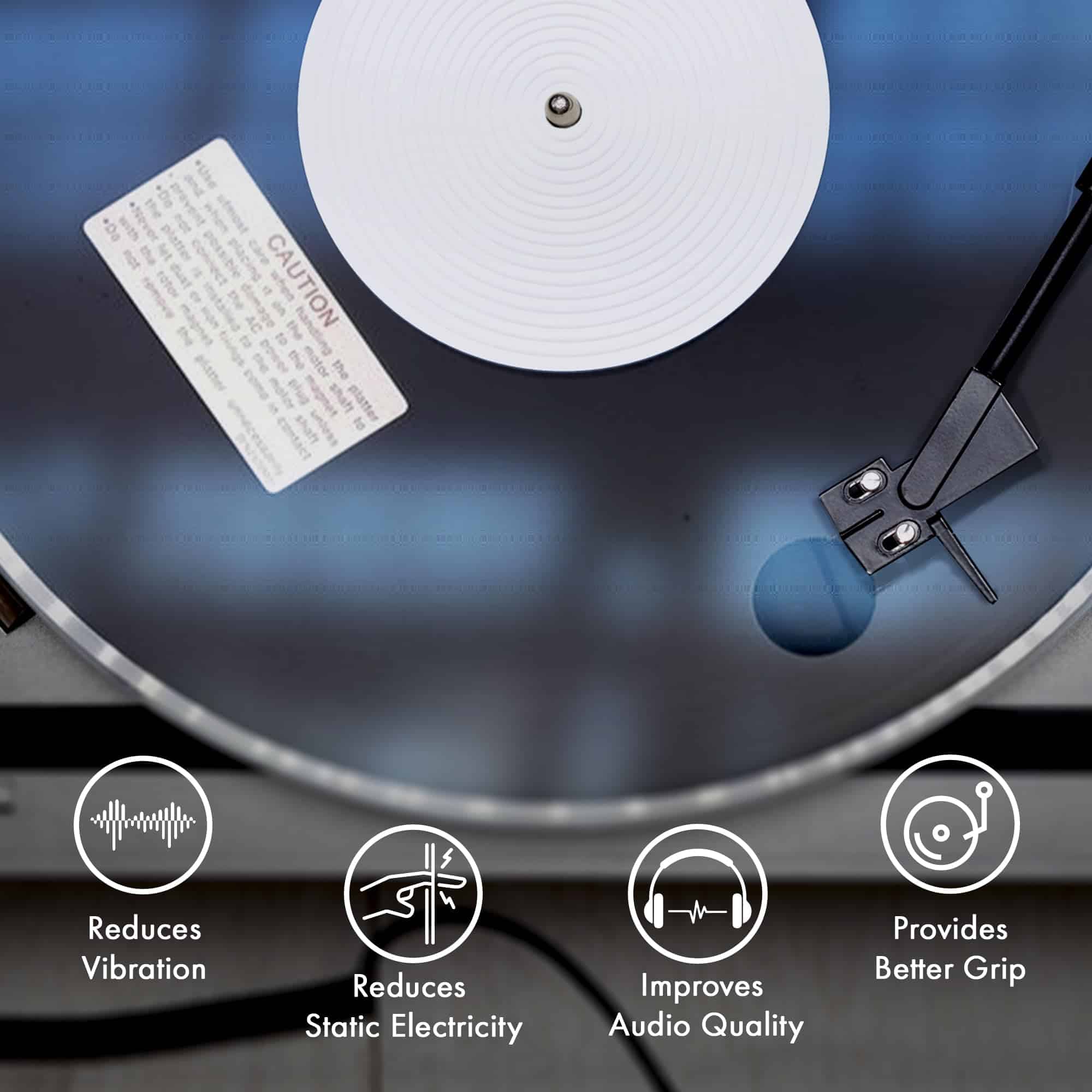 3. Un Look Elegante y Moderno – Convierte tu tornamesas en el punto focal de tu hogar. Nuestro tapete de acrílico para tocadiscos de vinilo muestra un elegante acabado blanco, sumando muchos puntos de estilo a tu configuración.